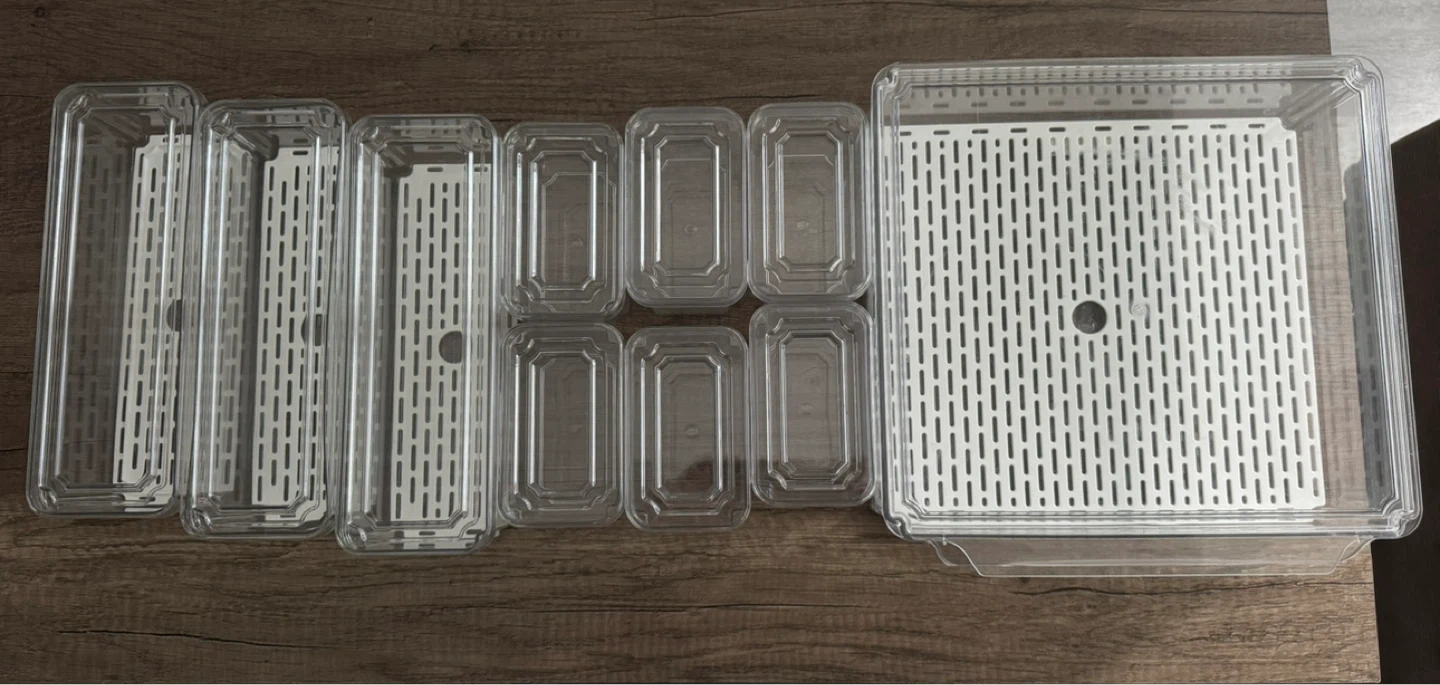 Selling a set of clear plastic food storage containers. They are bought recently and are still in great condition and ready to help organize your kitchen! Perfect for meal prepping or storing leftovers