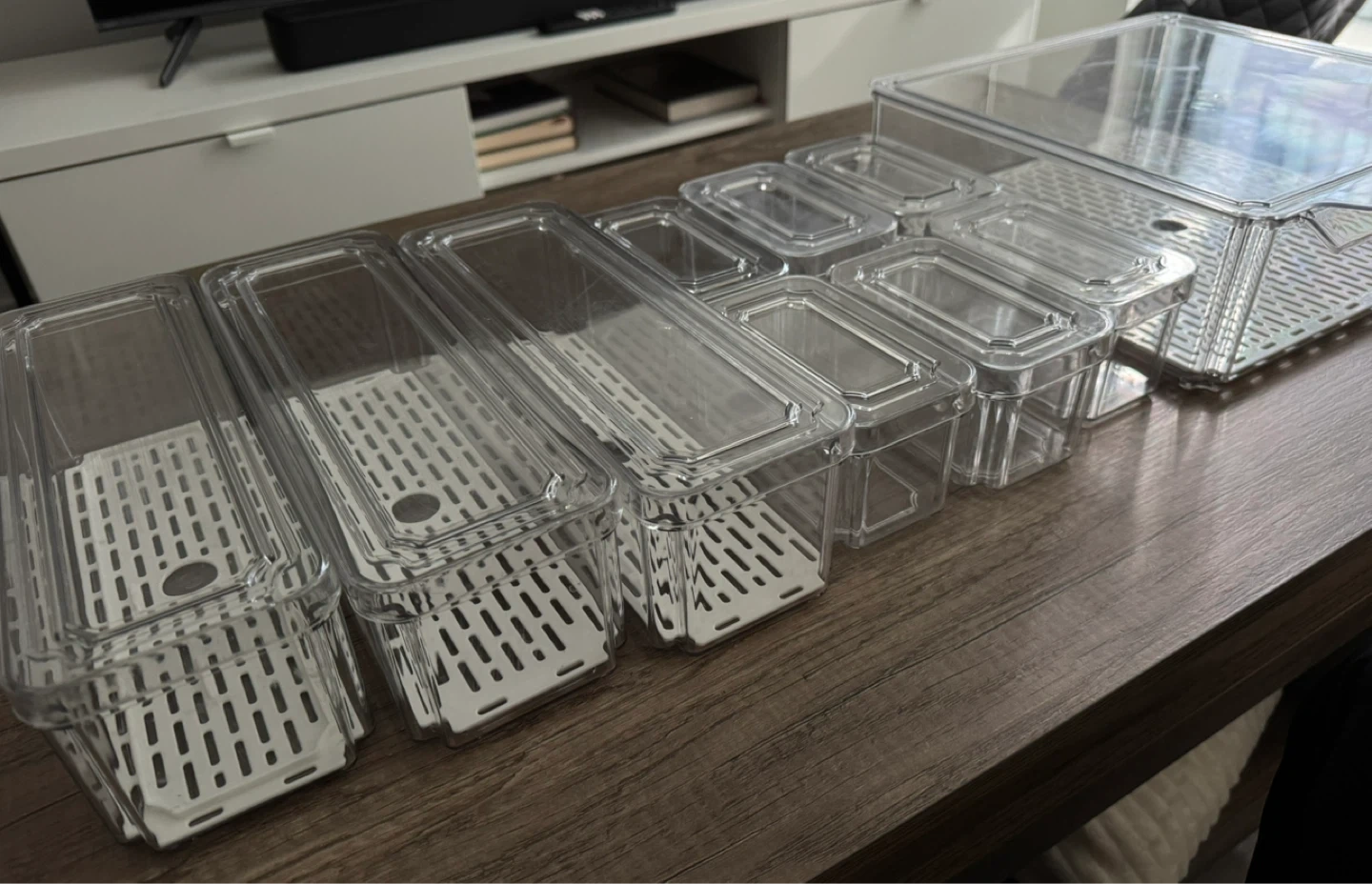 Selling a set of clear plastic food storage containers. They are bought recently and are still in great condition and ready to help organize your kitchen! Perfect for meal prepping or storing leftovers