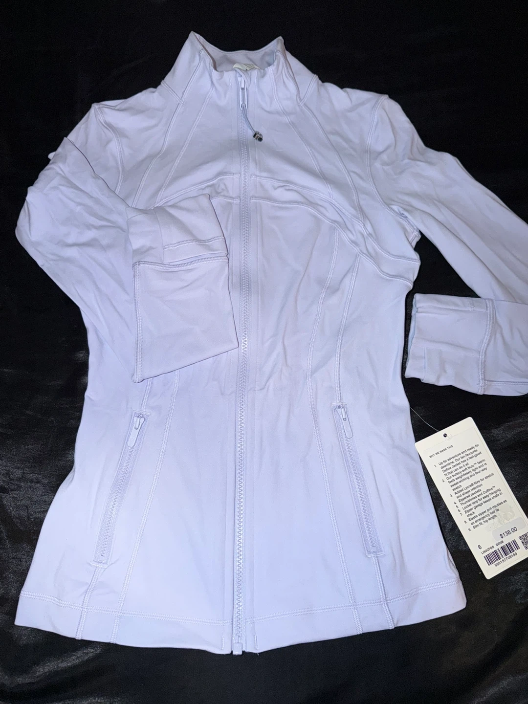 Selling a Lululemon Define Jacket in excellent condition! It's a size 6, colour is serene blue.