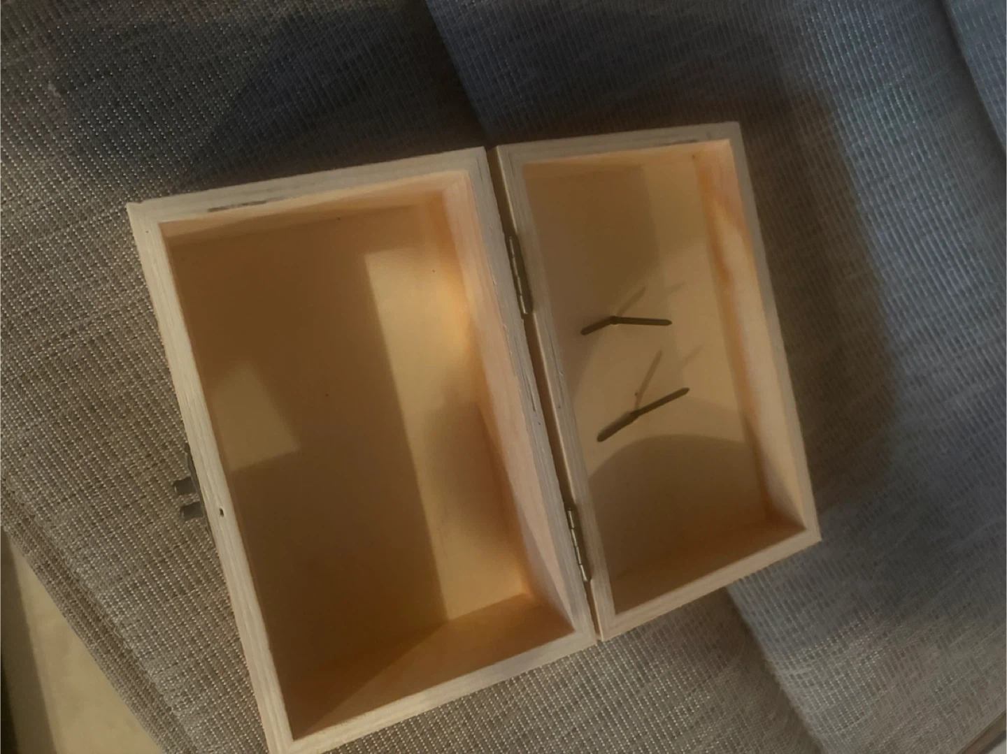A charming wooden box, perfect for adding a touch of rustic elegance to your space. It features a handle on top and a decorative clasp on the front. The inside is empty and ready to be filled with your treasures or used as a decorative accent