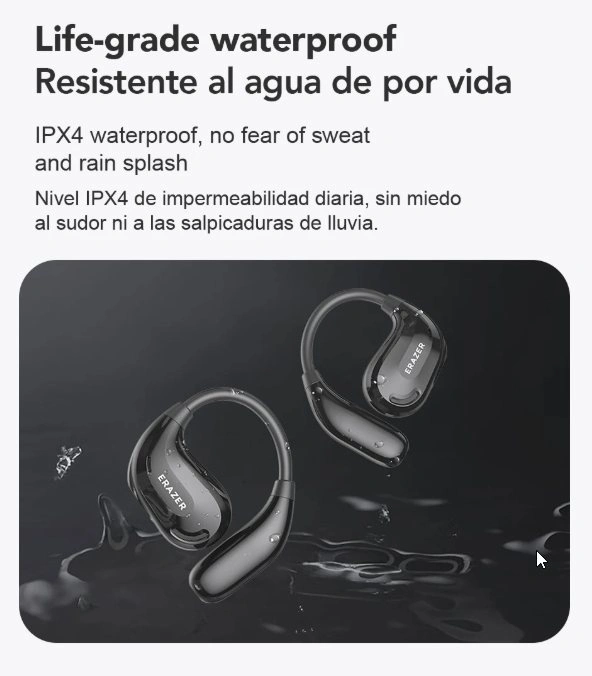Waterproof level: IPX5 for headphones, charging compartment is not waterproof