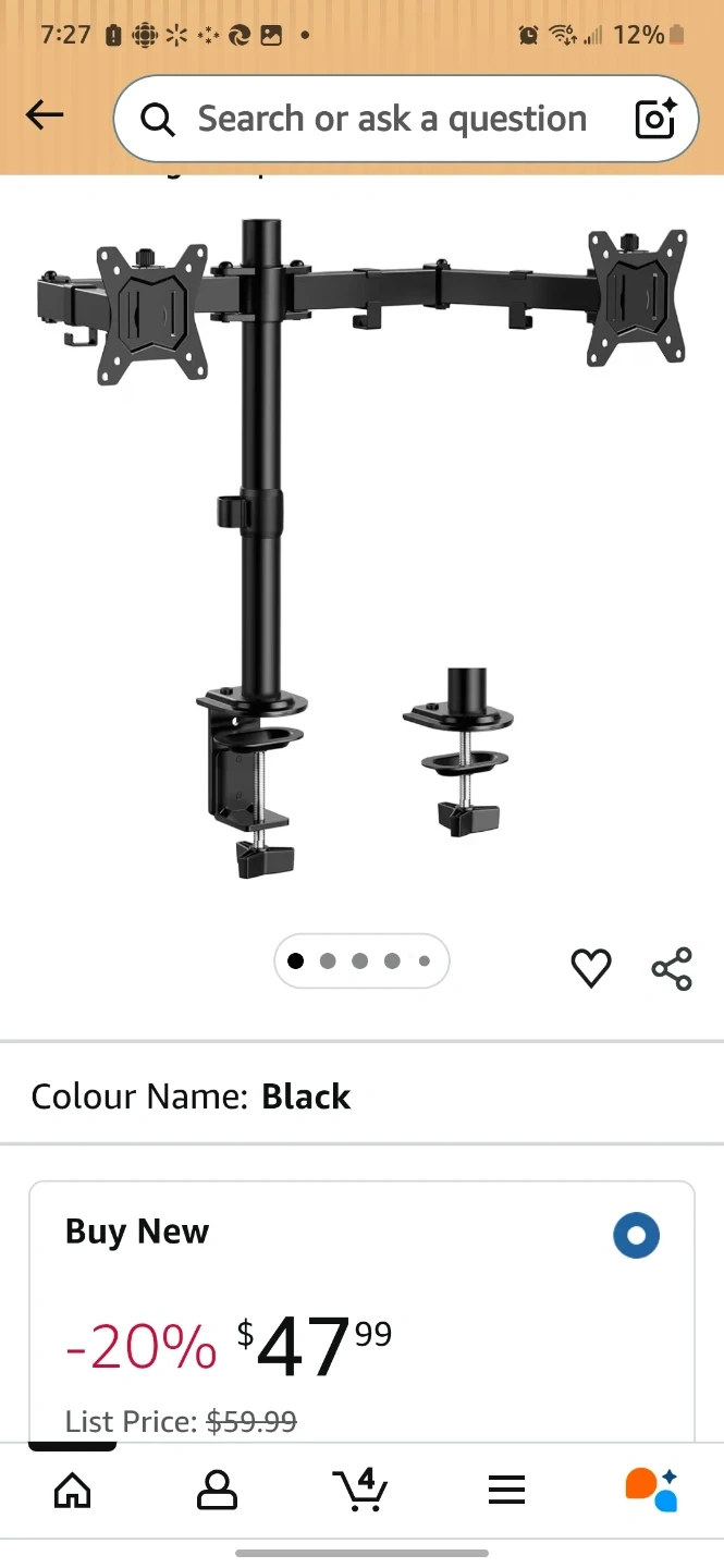 Monitor arm with VESA pattern compatibility. The box indicates it supports 75 x 75mm and 100 x 100mm VESA patterns. Max length is 3.9" or 100mm. Please see photos for details