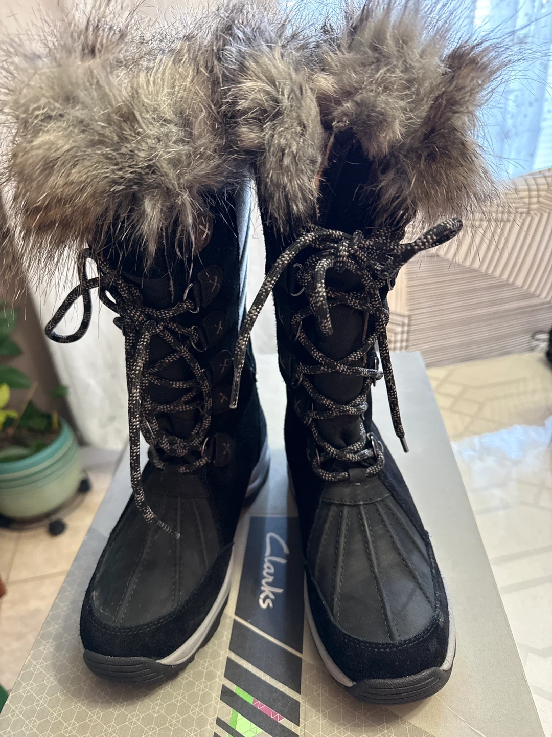 Selling a pair of Clarks Whitney Hi winter boots in black! These are super cozy and stylish, perfect for the Canadian winter. They come in their original box and are a women's size 6.