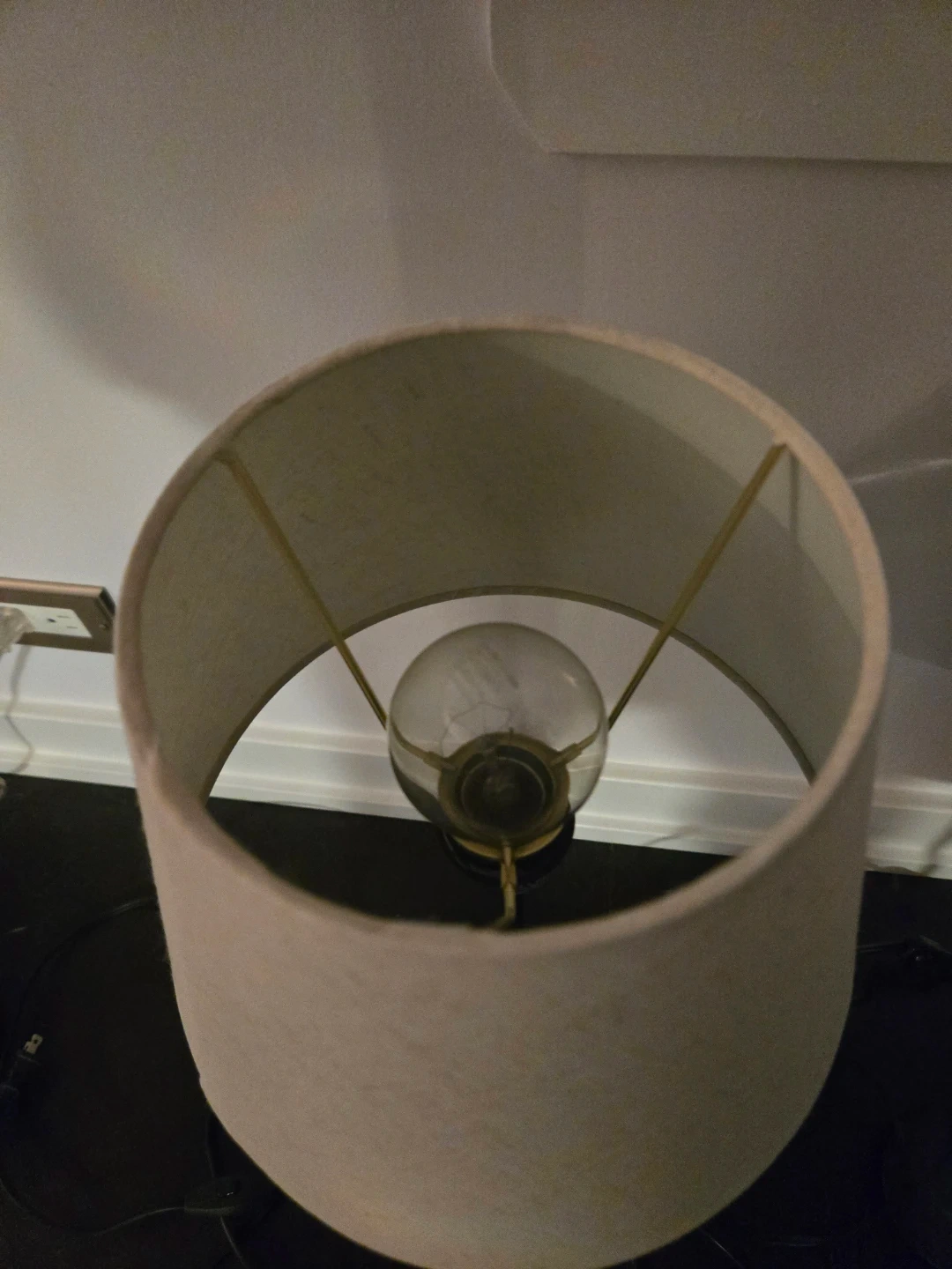 Looking to brighten up your space? I'm selling this modern table lamp. It features a sleek black base and a neutral linen shade. It's in great condition and would look lovely on a bedside table or desk