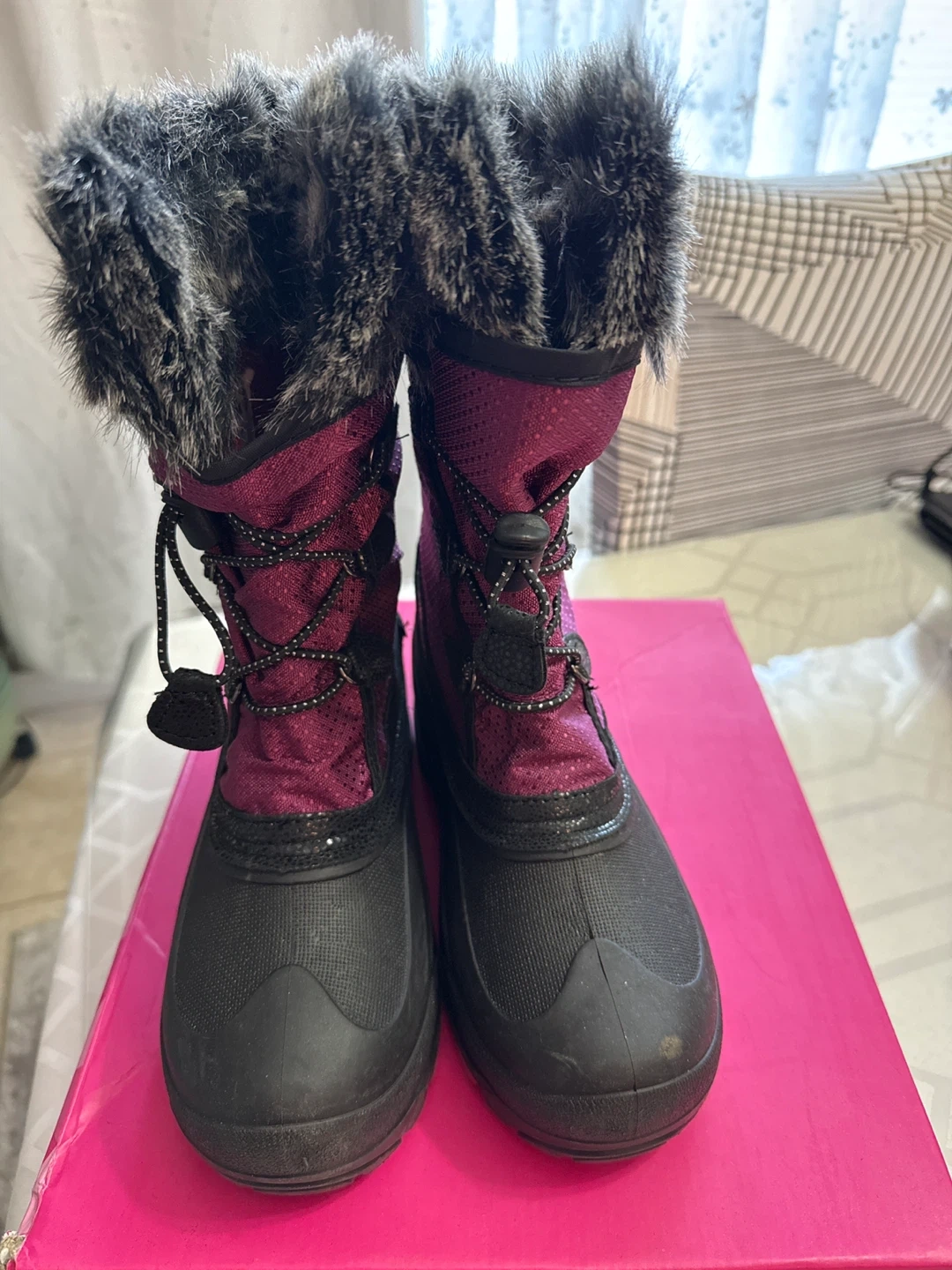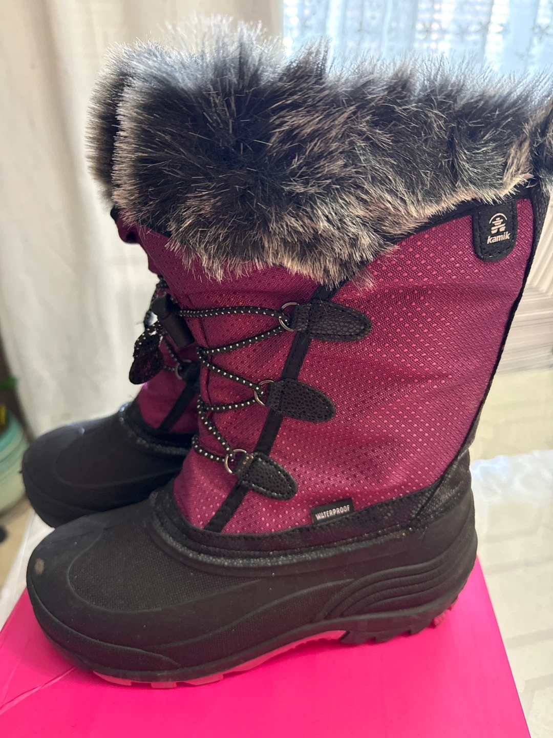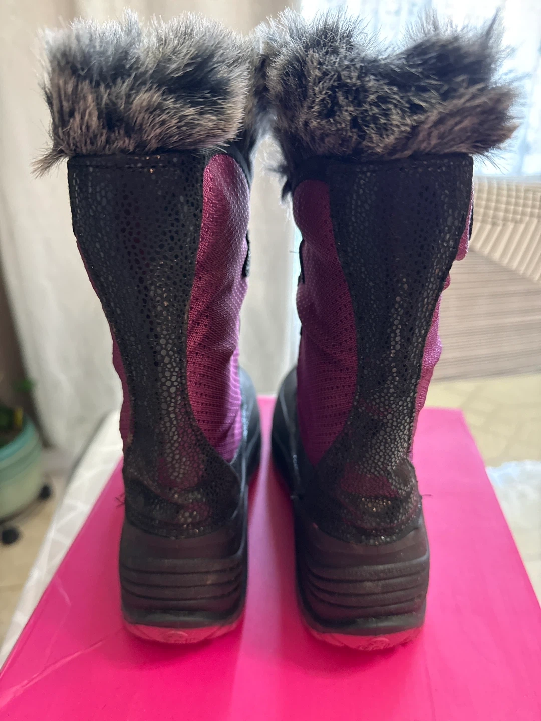 Kamik snow boots in a lovely purple colour! They are size 4 and feature a faux fur trim. These boots are also waterproof, perfect for Canadian winters! Comes with the original box