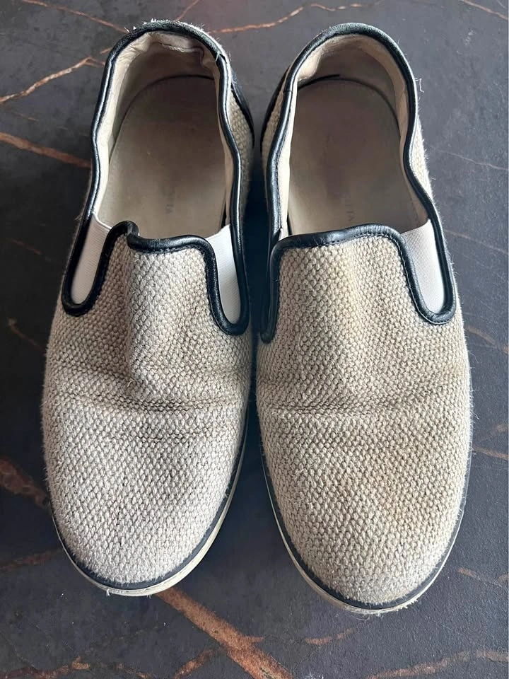 OBO. Canvas and leather. Worn with love. Very comfortable, durable, and intact. I’ve kicked leather so I really don’t care to have them anymore. Pick up at 528 Beatty St, Vancouver.