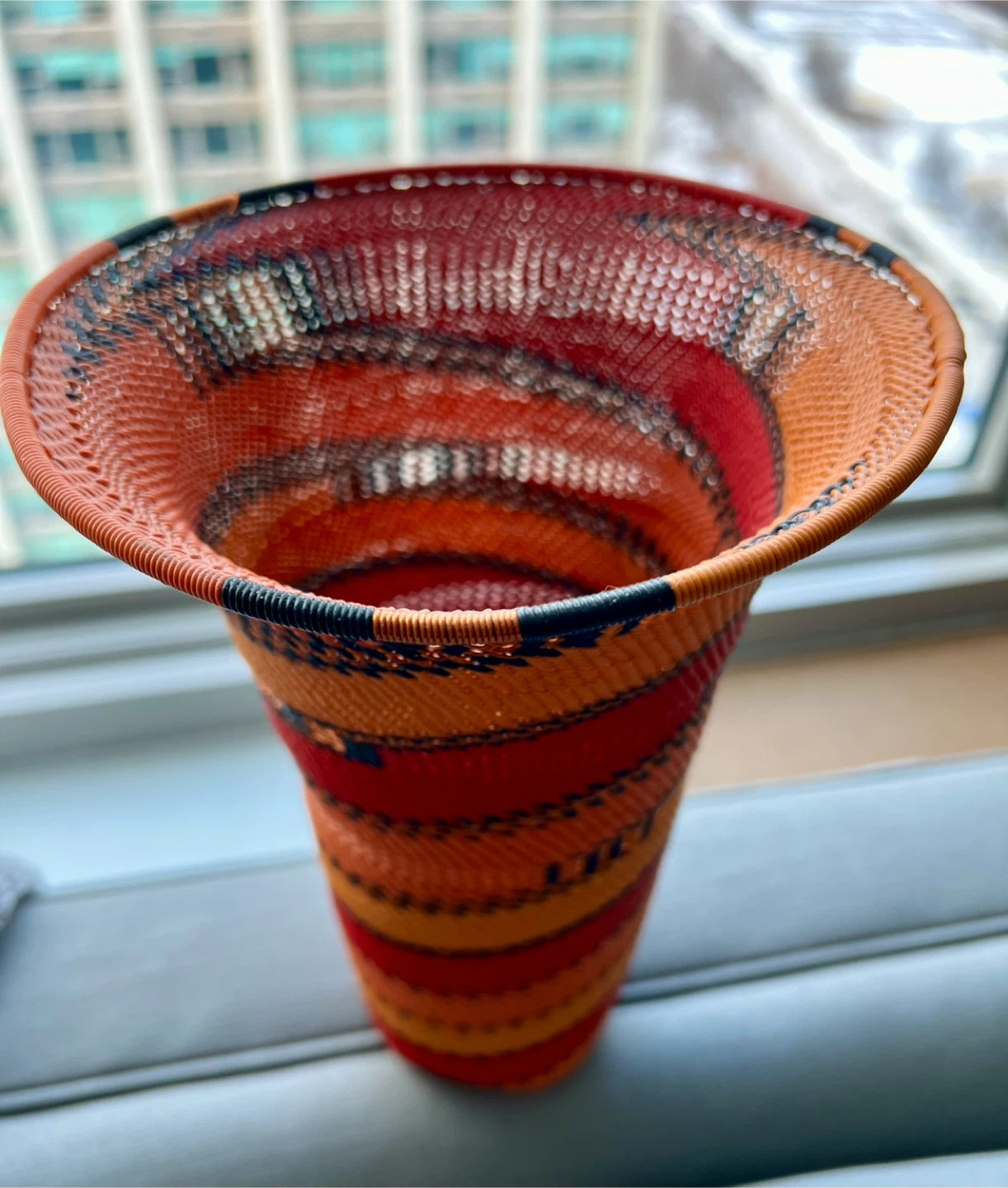 Handwoven Vase - Red, Orange, Black - 9" Tall