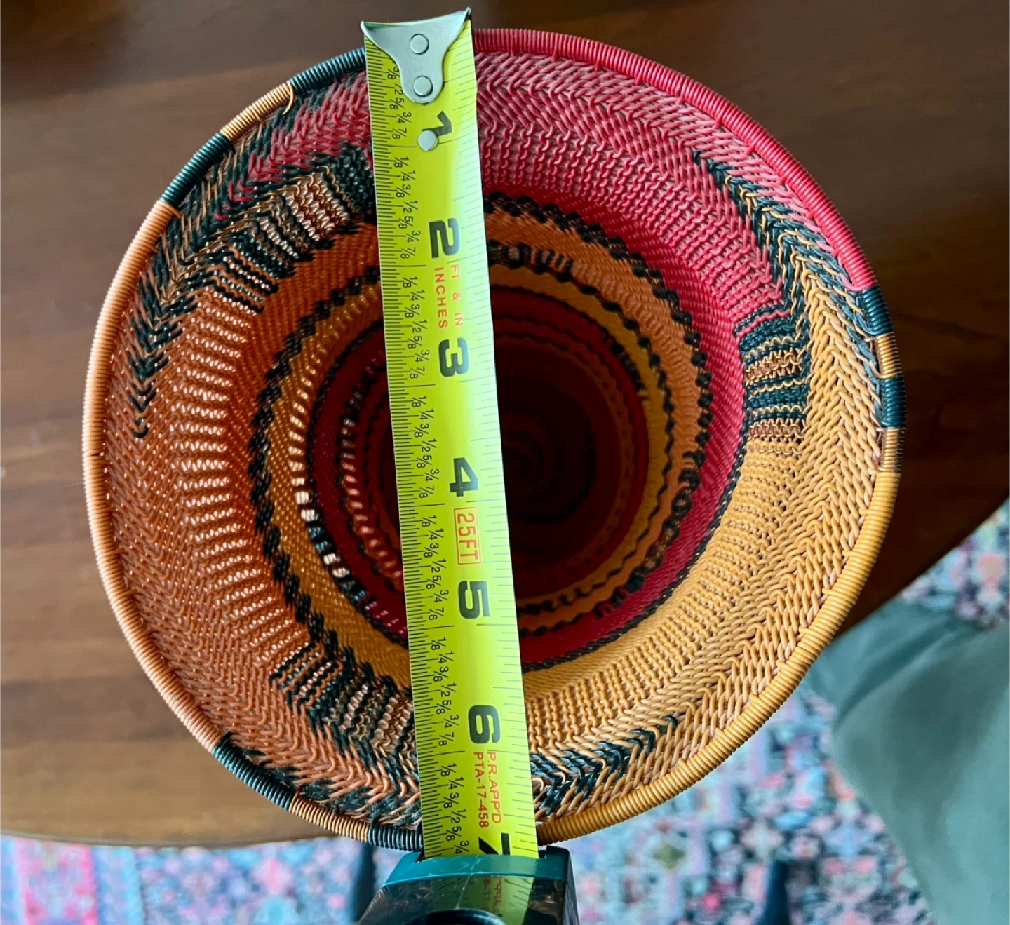 This handmade wire woven South African object of art was bought rom a women’s craft collective. Perfect for adding a pop of color to any room.