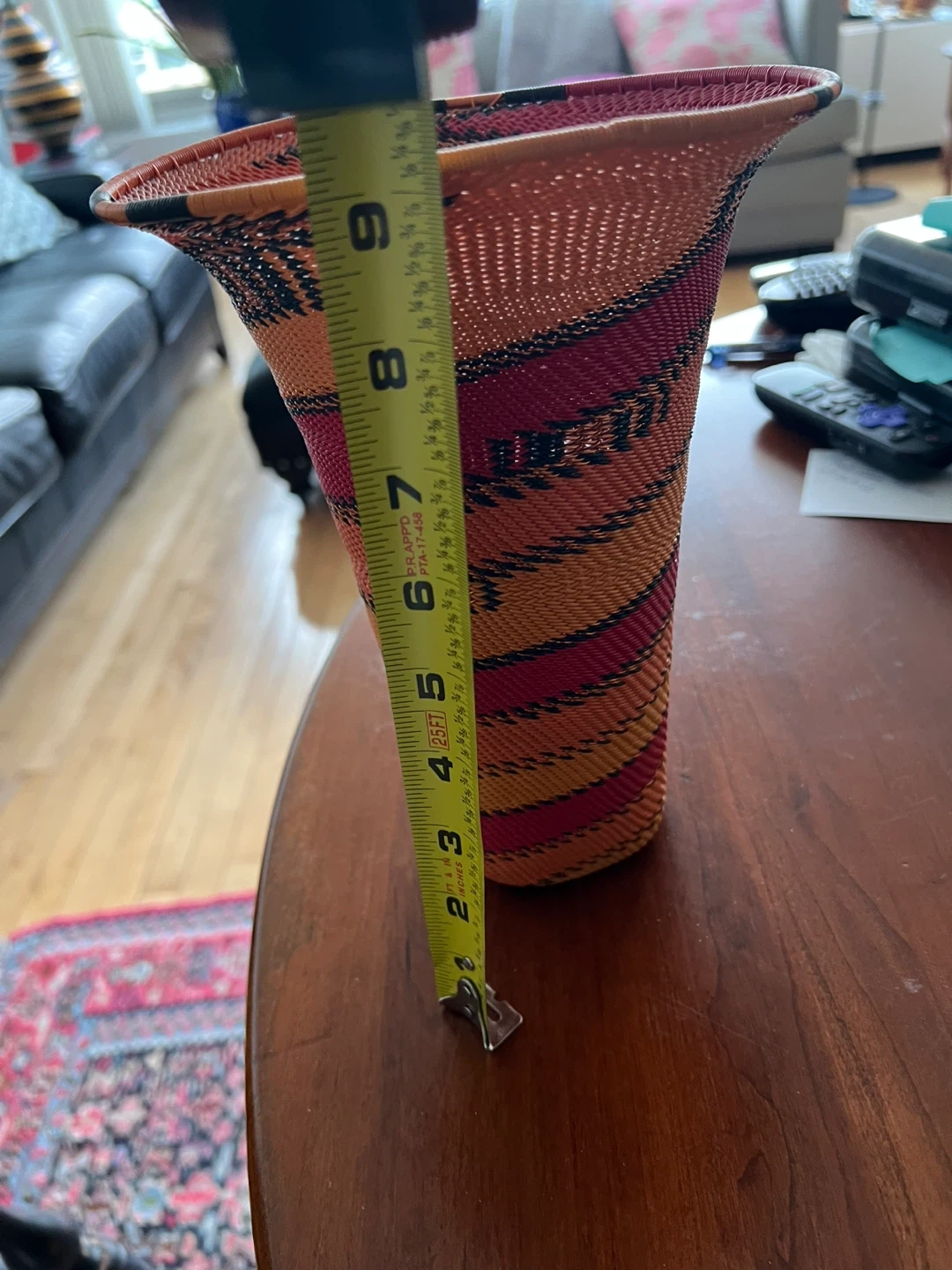 Handwoven Vase - Red, Orange, Black - 9" Tall