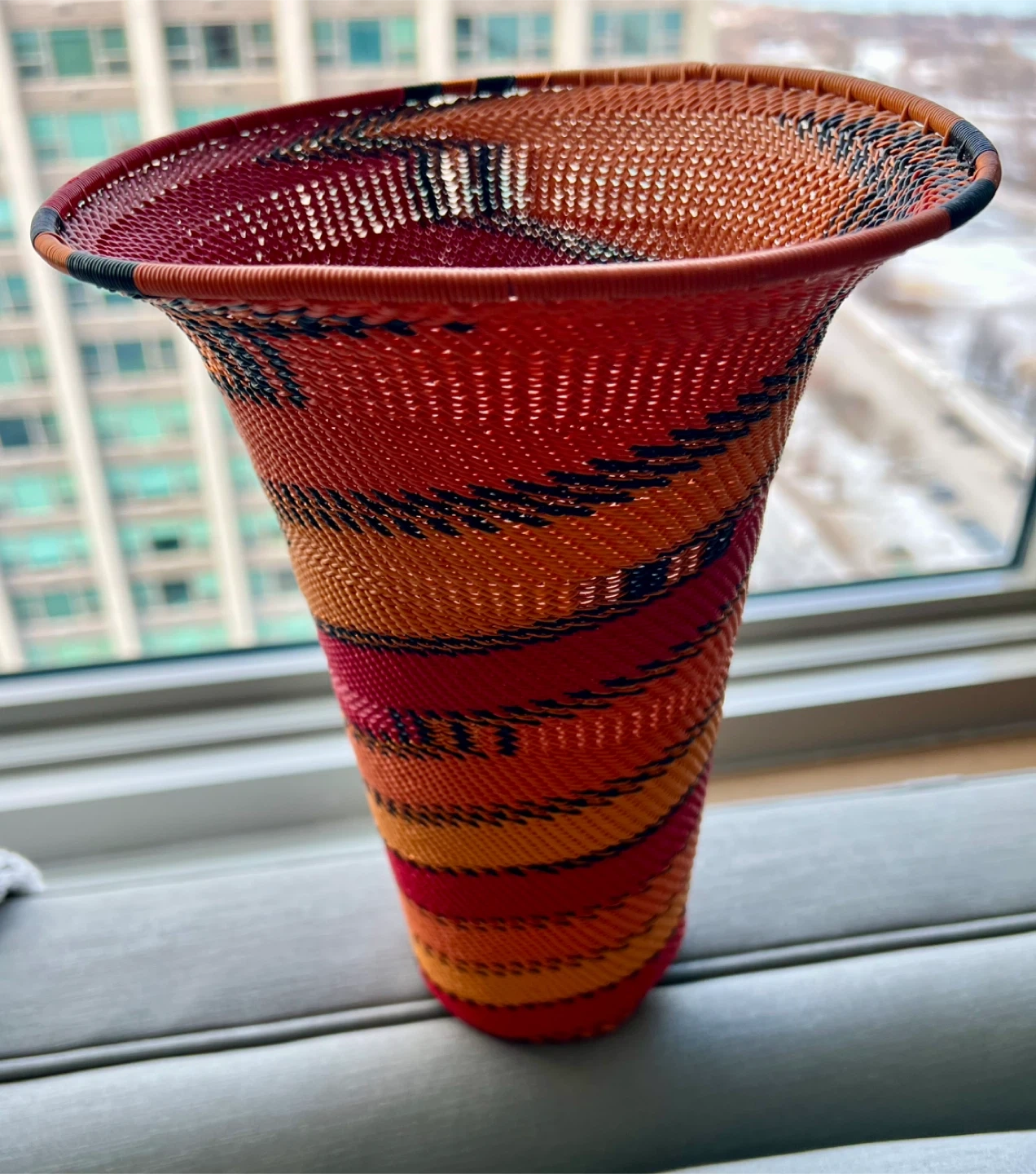 This handmade wire woven South African object of art was bought rom a women’s craft collective. Perfect for adding a pop of color to any room.