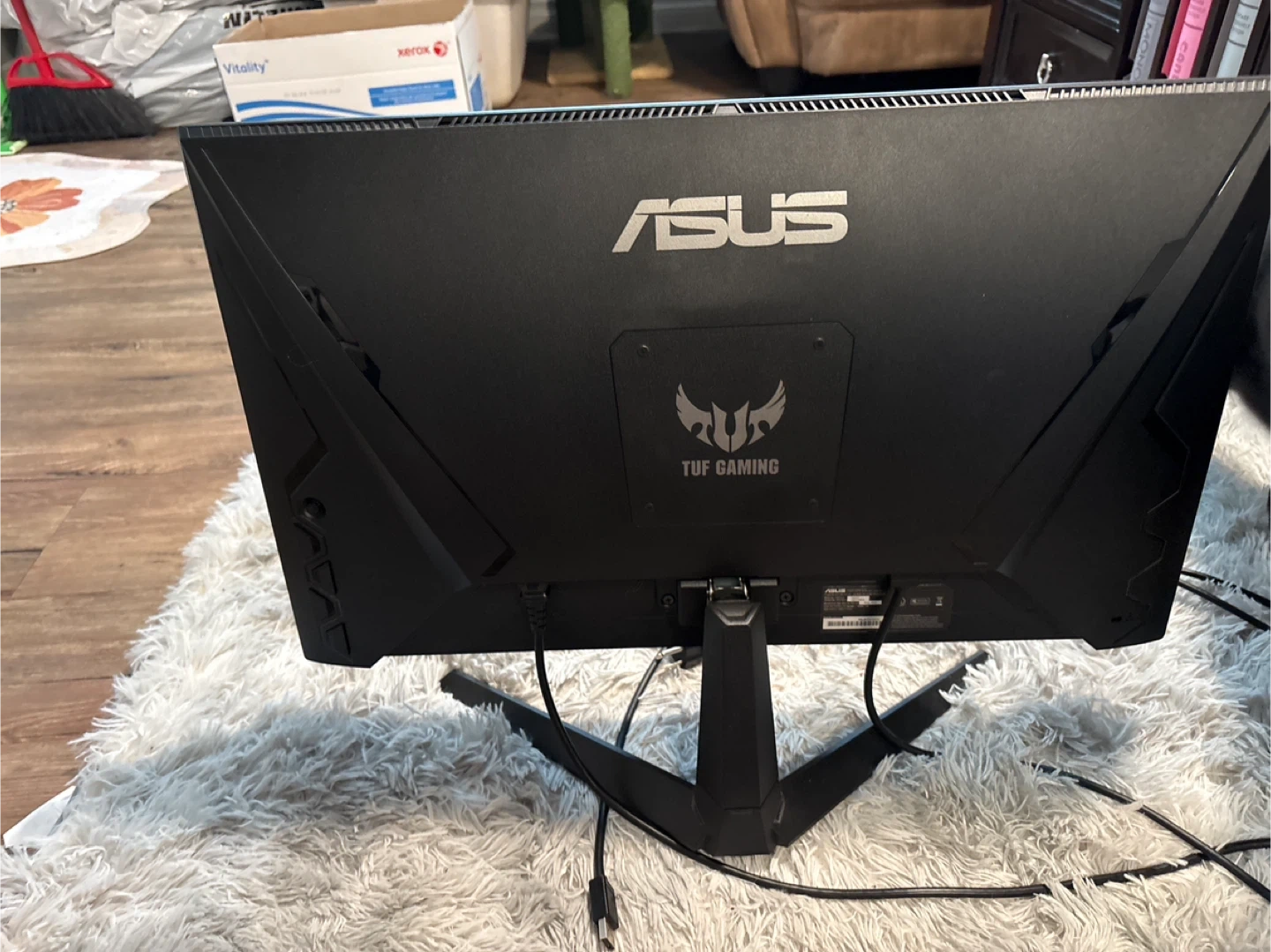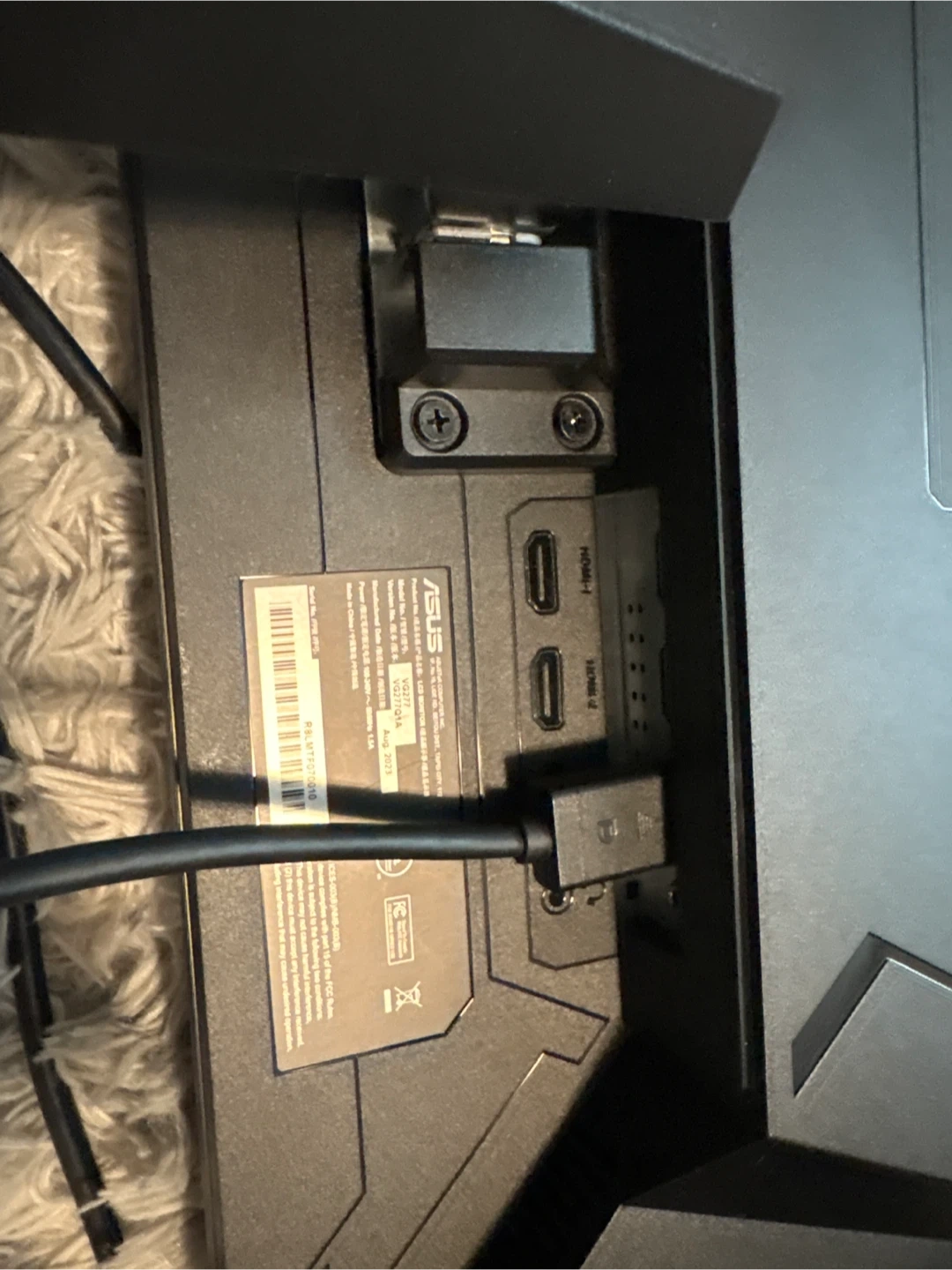 Selling my ASUS VG27A 27-inch gaming monitor. It has built in speakers, and a headphone jack. It also supports HDMI (2 ports) and DisplayPort. It's in great condition and ready for a new setup! It was manufactured in August 2023. Includes power cable and DisplayPort cable.