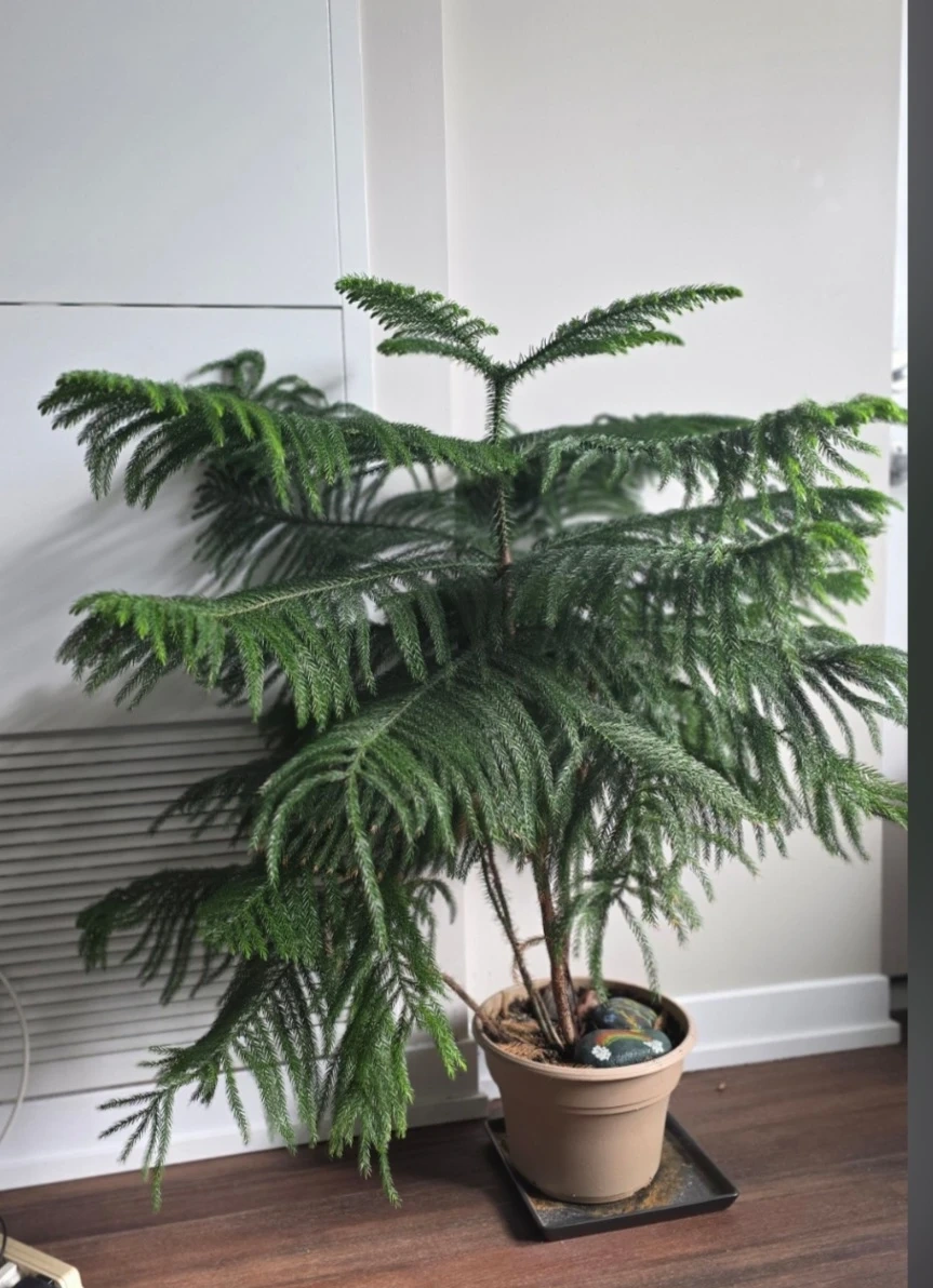 This is a lovely Araucaria heterophylla, also known as a Norfolk Island Pine! It's a beautiful addition to any home, bringing a touch of nature indoors