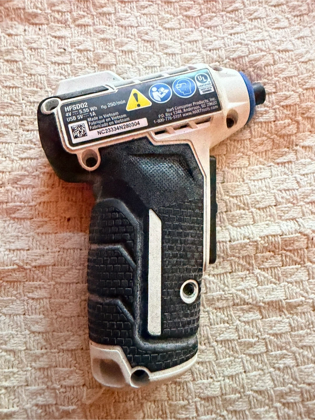 Selling a HART impact driver, model HFS002. It's in great condition and ready for your next project! This compact driver packs a punch with its high-performance motor. It's lightweight and easy to handle, making it perfect for various tasks around the house or on the job site