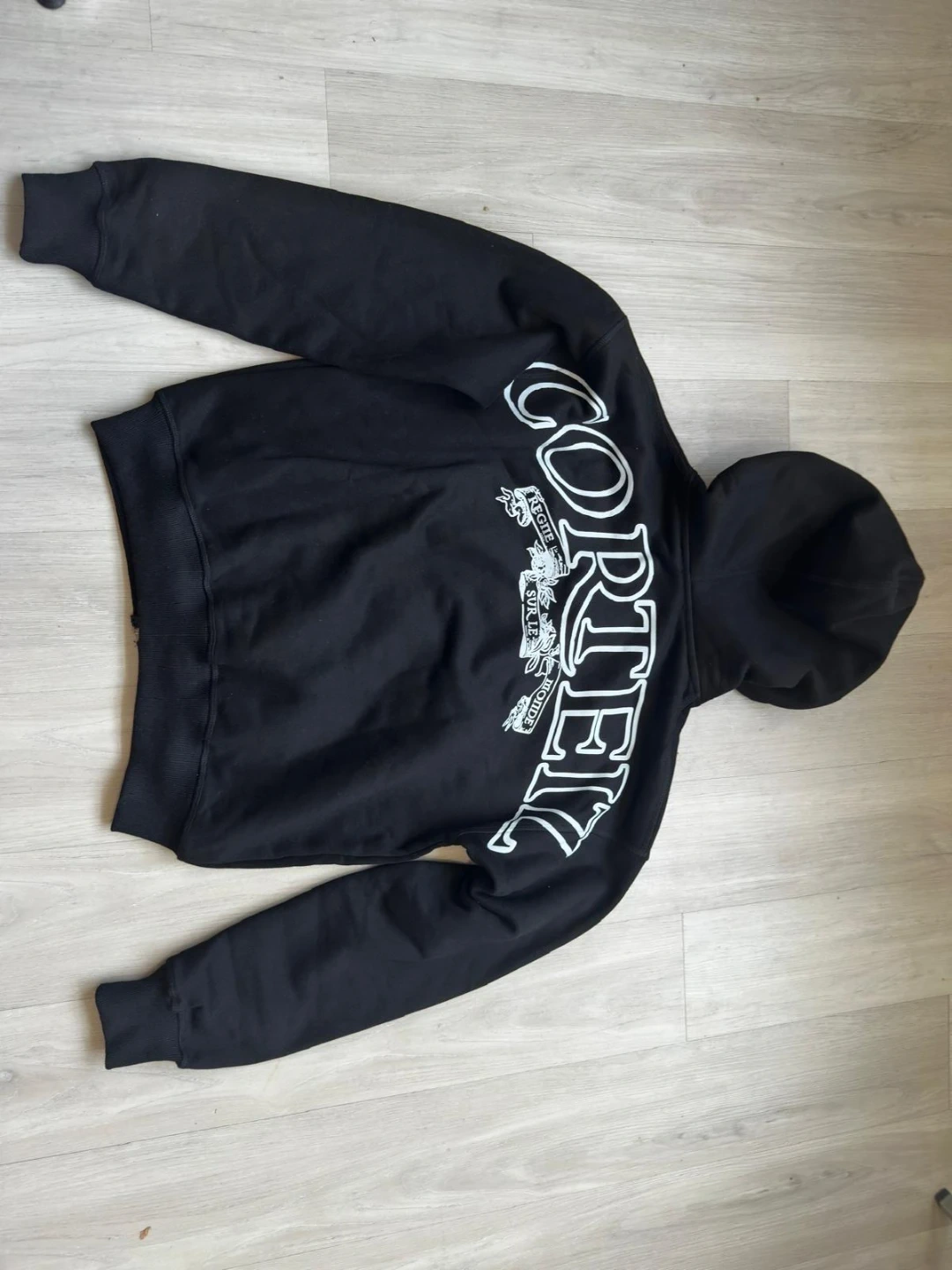 Selling a Corteiz matching set! It includes a black hoodie and sweatpants. The set features a unique design on both pieces. Great for a stylish and comfortable look!