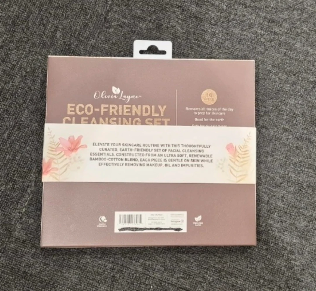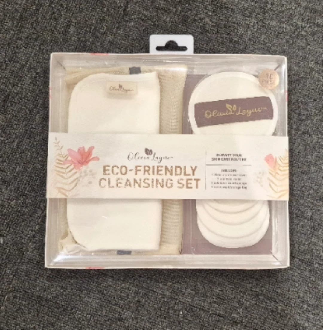 Brand new and never opened set of towels to elevate your skincare routine. Set includes 1 makeup remover towel, 7 mini cleansing towels, 1 exfoliating sponge, 1 mesh storage bag.