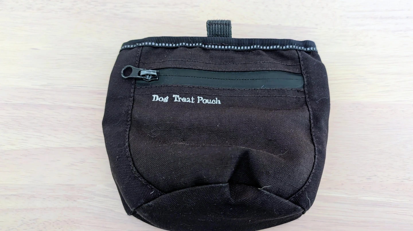 Here's a handy black dog treat pouch! It's perfect for training or just rewarding your furry friend on walks. It has a zippered pocket and clips for attaching to your belt or leash