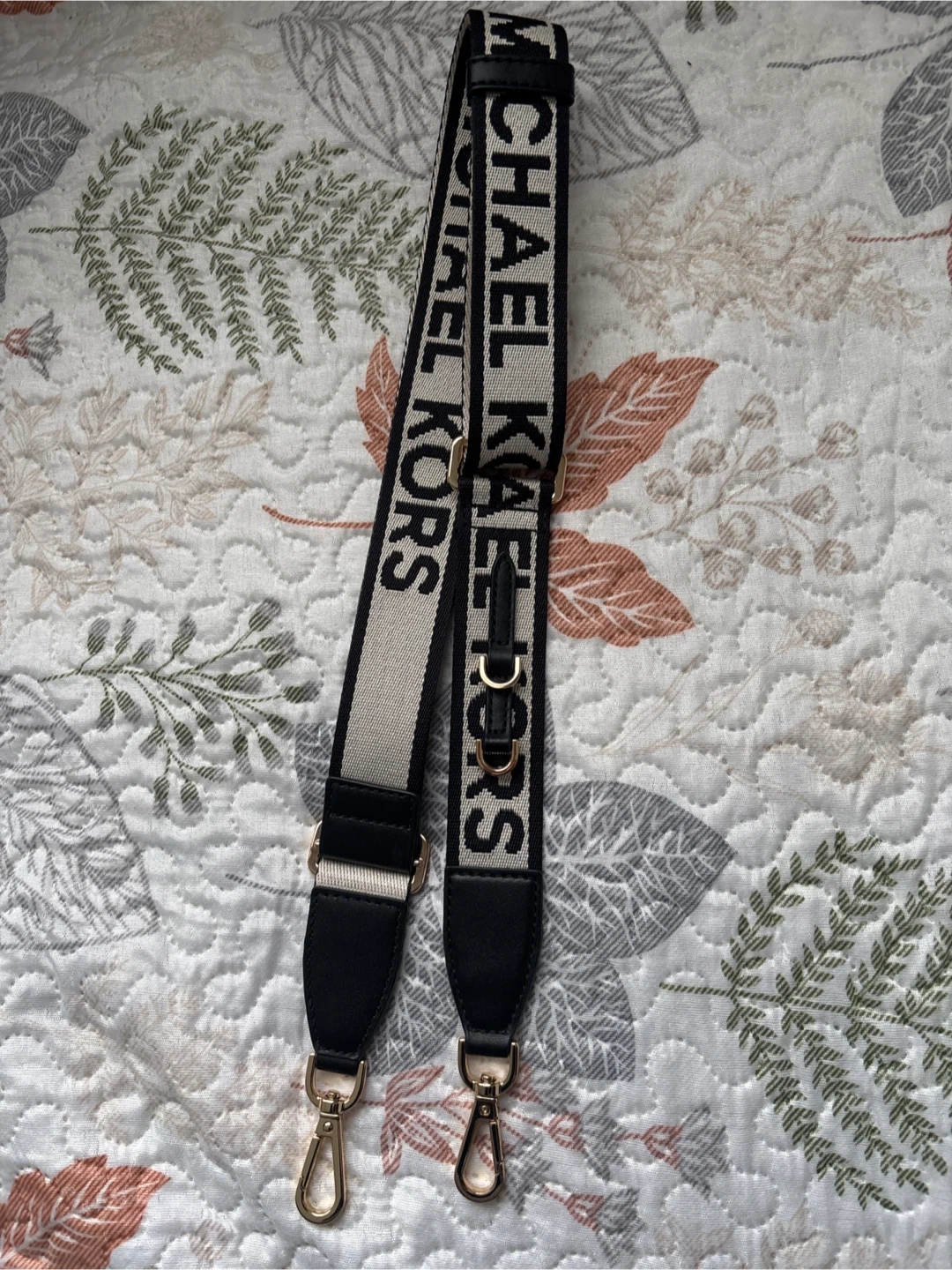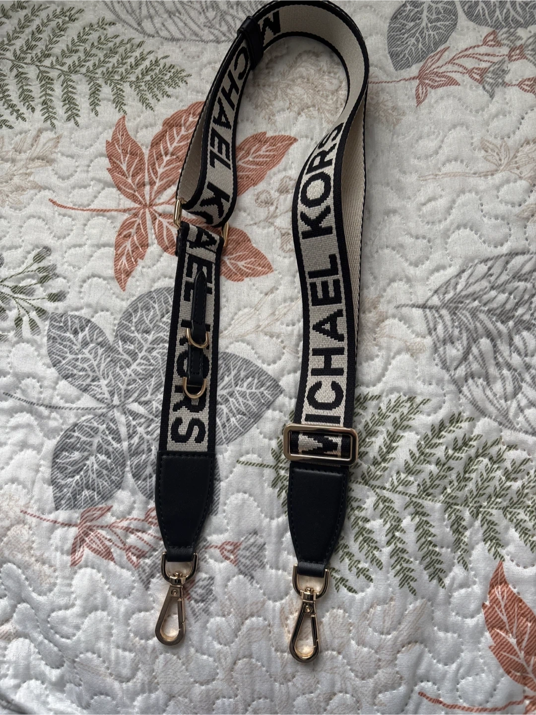 Brand new, never used, detachable 35mm Stylish Michael Kors bag strap! It features a black and beige woven design with the brand name prominently displayed. The strap has gold-tone hardware and black leather accents, adding a touch of sophistication to any bag.