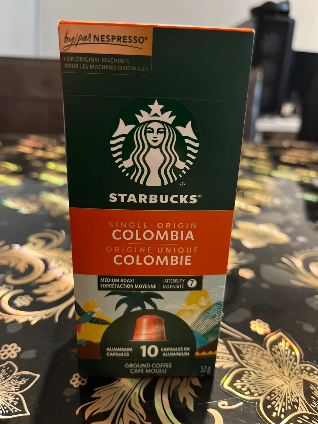 Selling per box of Starbucks Single-Origin Colombia Nespresso capsules. Each box contains 10 aluminum capsules of ground coffee. Perfect for your Nespresso machine! Enjoy the taste of 100% Arabica coffee with notes of toasted walnut and herbs. Best before 2025 December 25