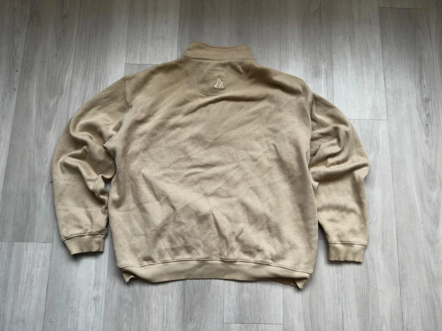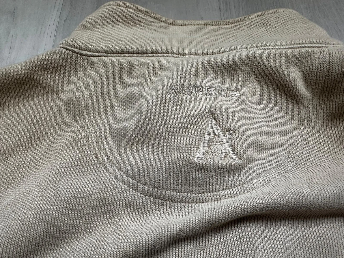 Cozy Aureus quarter-zip pullover in a neutral beige colour! It's in great condition and perfect for layering or just lounging around. The subtle design and comfortable fit make it a versatile addition to any wardrobe