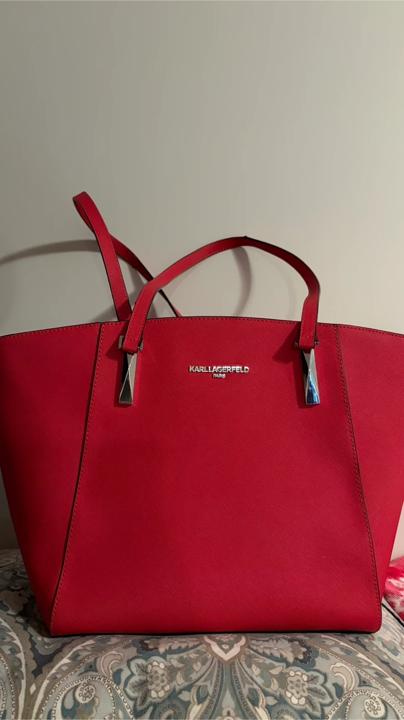 Selling a stylish Karl Lagerfeld Paris tote bag! It's a vibrant red colour and in great condition. Perfect for carrying all your essentials in style.