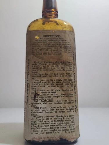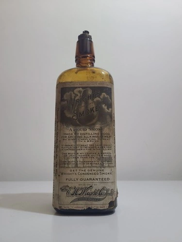 RARE 1900s Wrights Condensed Liquid Smoke Bottle