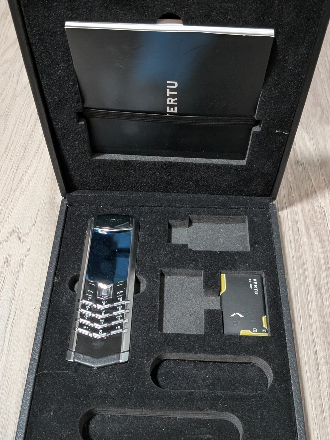 Selling a Vertu luxury mobile phone. It comes with its original box and accessories. A unique piece for collectors or anyone looking for a high-end communication device