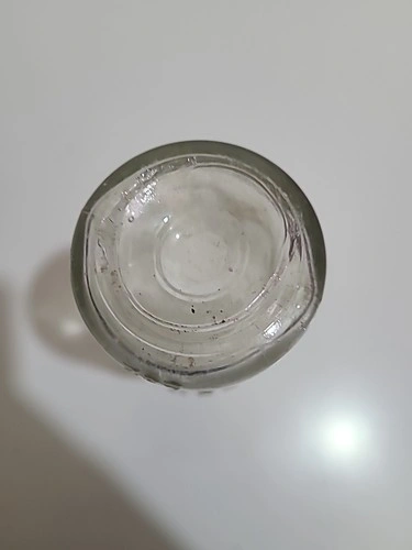 Crafted during a time when glassware was as much a functional item as it was a work of art, this bottle stands as a unique testament to the manufacturing practices of the period. Ideal for display in your home or as part of a larger collection, it encapsulates a bygone era and is sure to spark conversations and admiration for its historical significance.