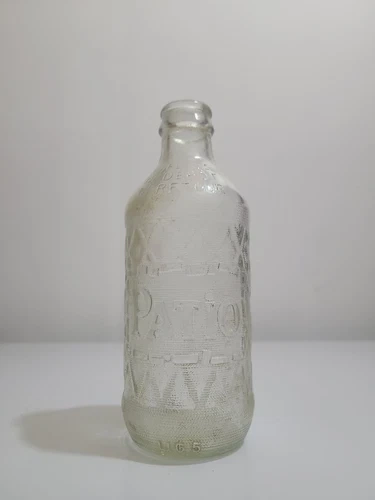 Experience a piece of Canadian history with this rare vintage 1960s Patio Soda Bottle. Embossed with the iconic Patio logo, this 12 oz. bottle is a true collector's gem, showcasing the classic design and craftsmanship of the era. Its clear glass allows you to admire the intricate details and the way light dances within the bottle, adding to its charm.