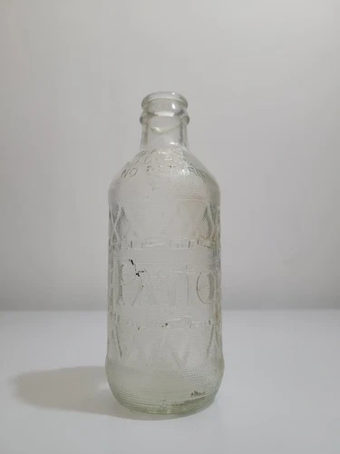 Experience a piece of Canadian history with this rare vintage 1960s Patio Soda Bottle. Embossed with the iconic Patio logo, this 12 oz. bottle is a true collector's gem, showcasing the classic design and craftsmanship of the era. Its clear glass allows you to admire the intricate details and the way light dances within the bottle, adding to its charm.