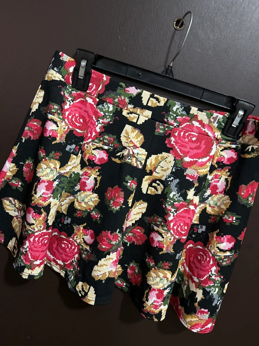 A new and Cute V&V skirt with a lovely floral pattern! It's a size large and made with 95% rayon and 5% spandex, so it's comfy and has a bit of stretch to it
