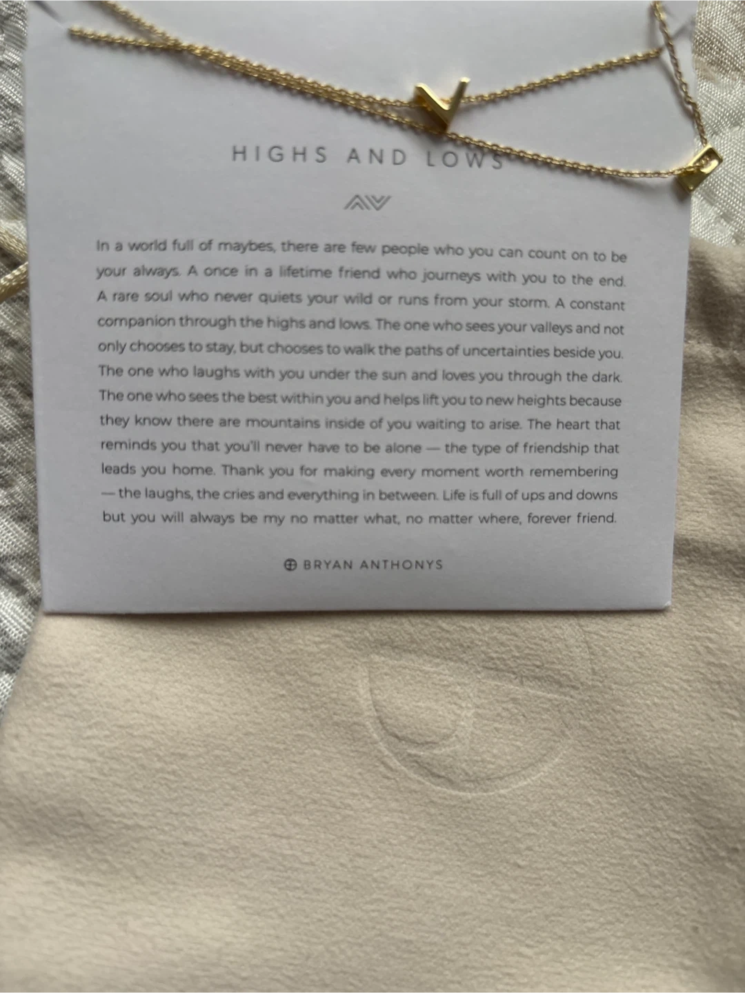 Brand new in bag; Bryan Anthonys "Highs and Lows" necklace. It comes with the original beige velour drawstring packaging and card.