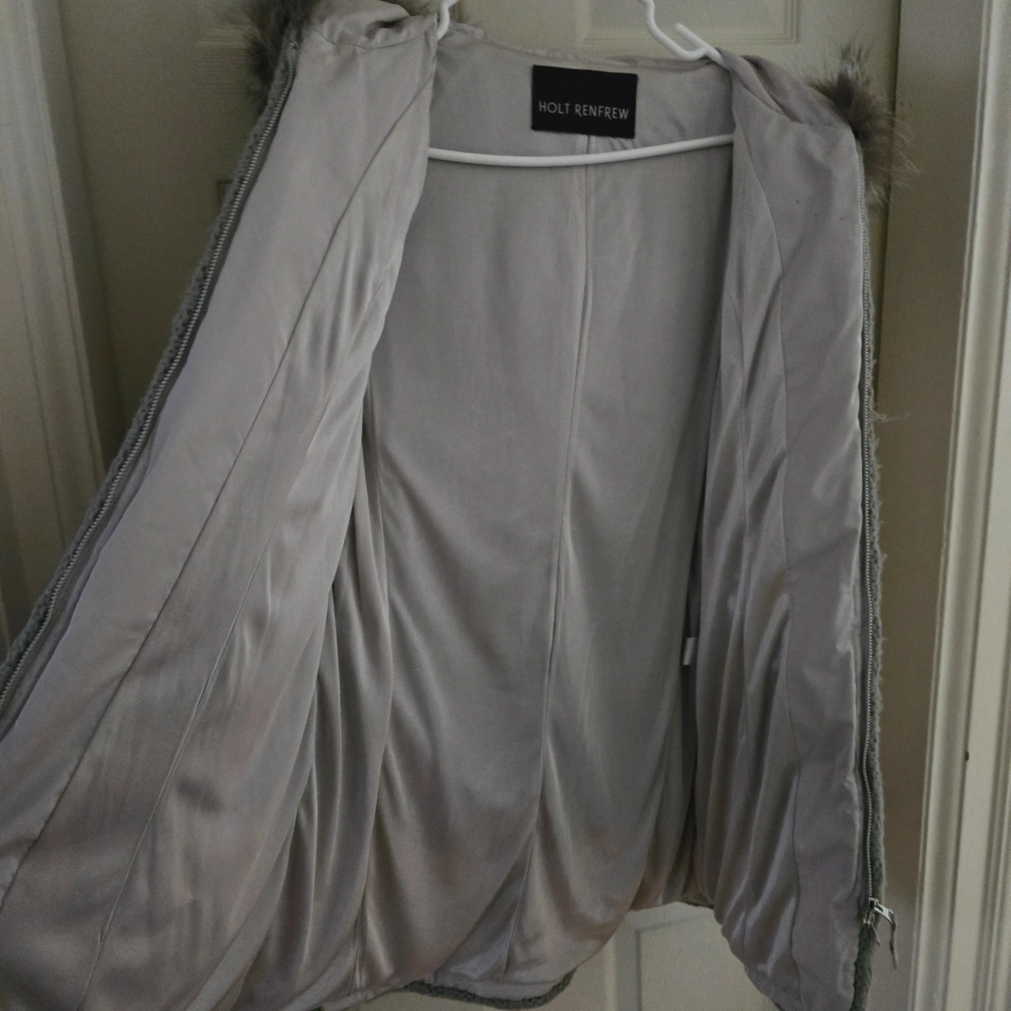 Selling a Holt Renfrew down parka in size 42 (fits small/medium). It's a stylish and warm jacket perfect for the colder months! A couple frayed spots midway as indicated by last photo.