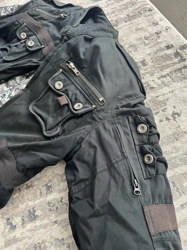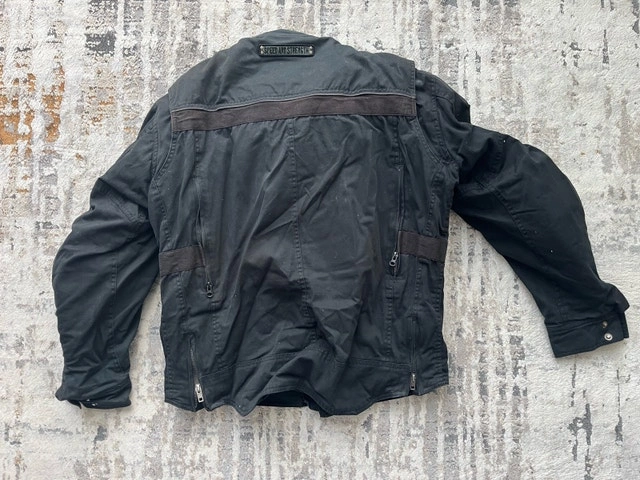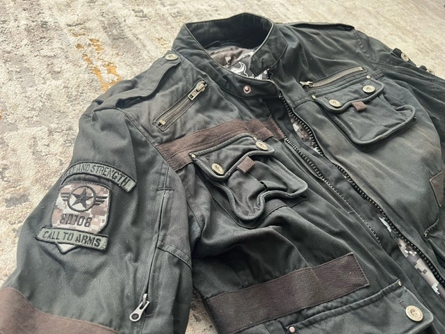 I'm selling a used Speed Strength jacket, a blend of style and function. This jacket features multiple pockets and zipper details. This jacket has been previously worn and has signs of wear, which adds to its character.