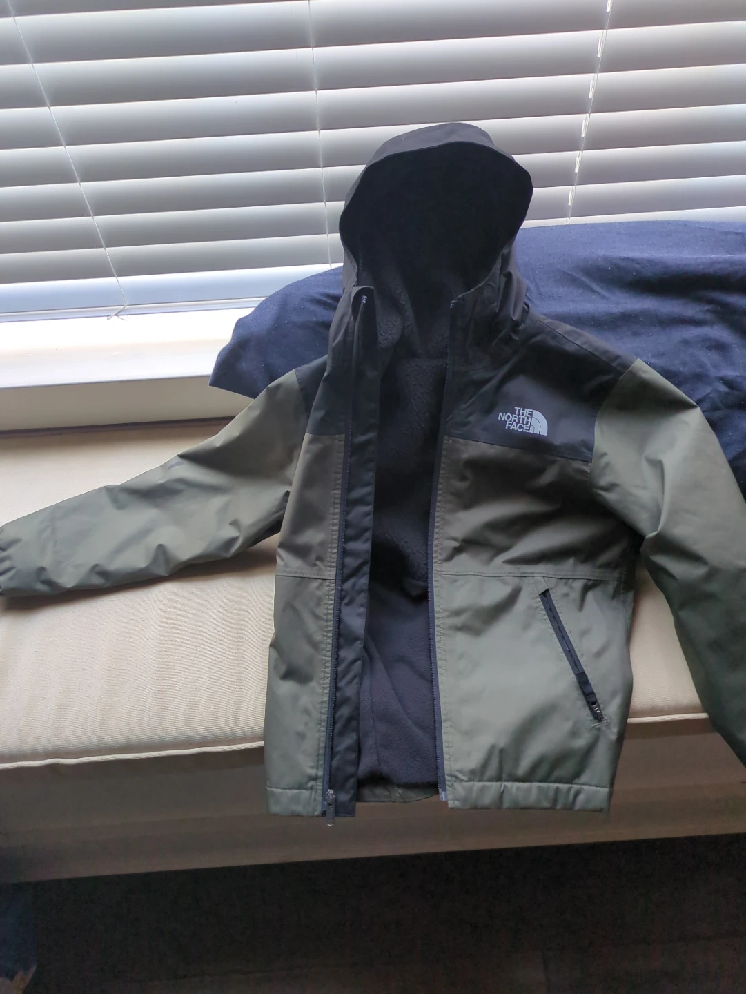 Selling a The North Face boys' jacket in size M/M (10). It's in great condition and ready for the colder weather! The jacket features a hood and a zippered pocket.