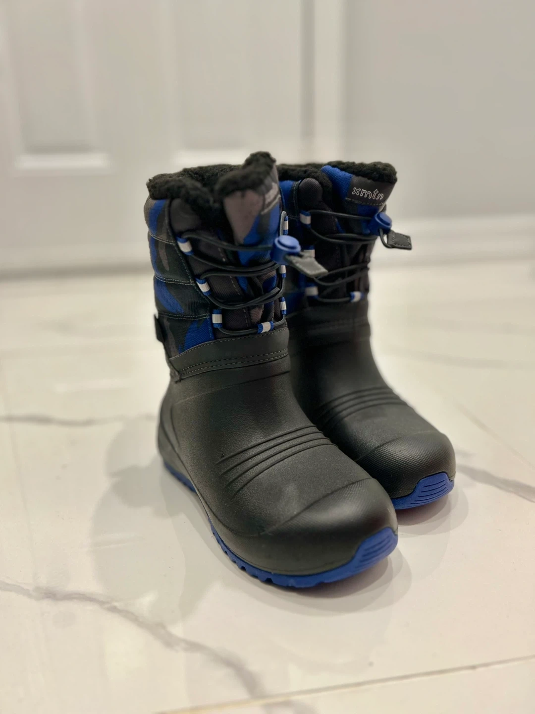 Keep your little one warm with these XMTN winter boots! They're in great condition and ready for the snowy season. The boots are a size 4 and feature a stylish blue and black design
