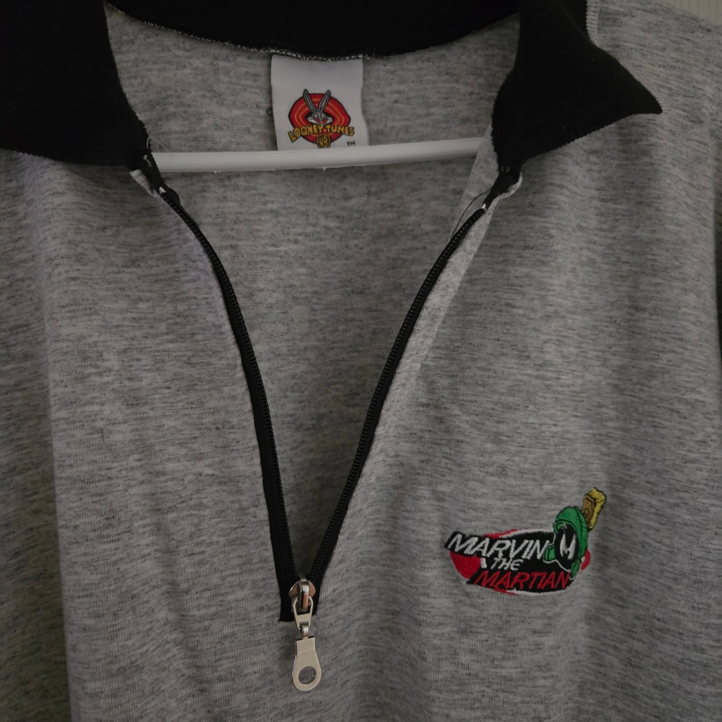 Selling a Looney Tunes polo shirt featuring Marvin the Martian! It's a size Large and made from a blend of 50% polyester and 50% cotton. The colour is a nice heather grey with a black collar. Perfect for any Looney Tunes fan!