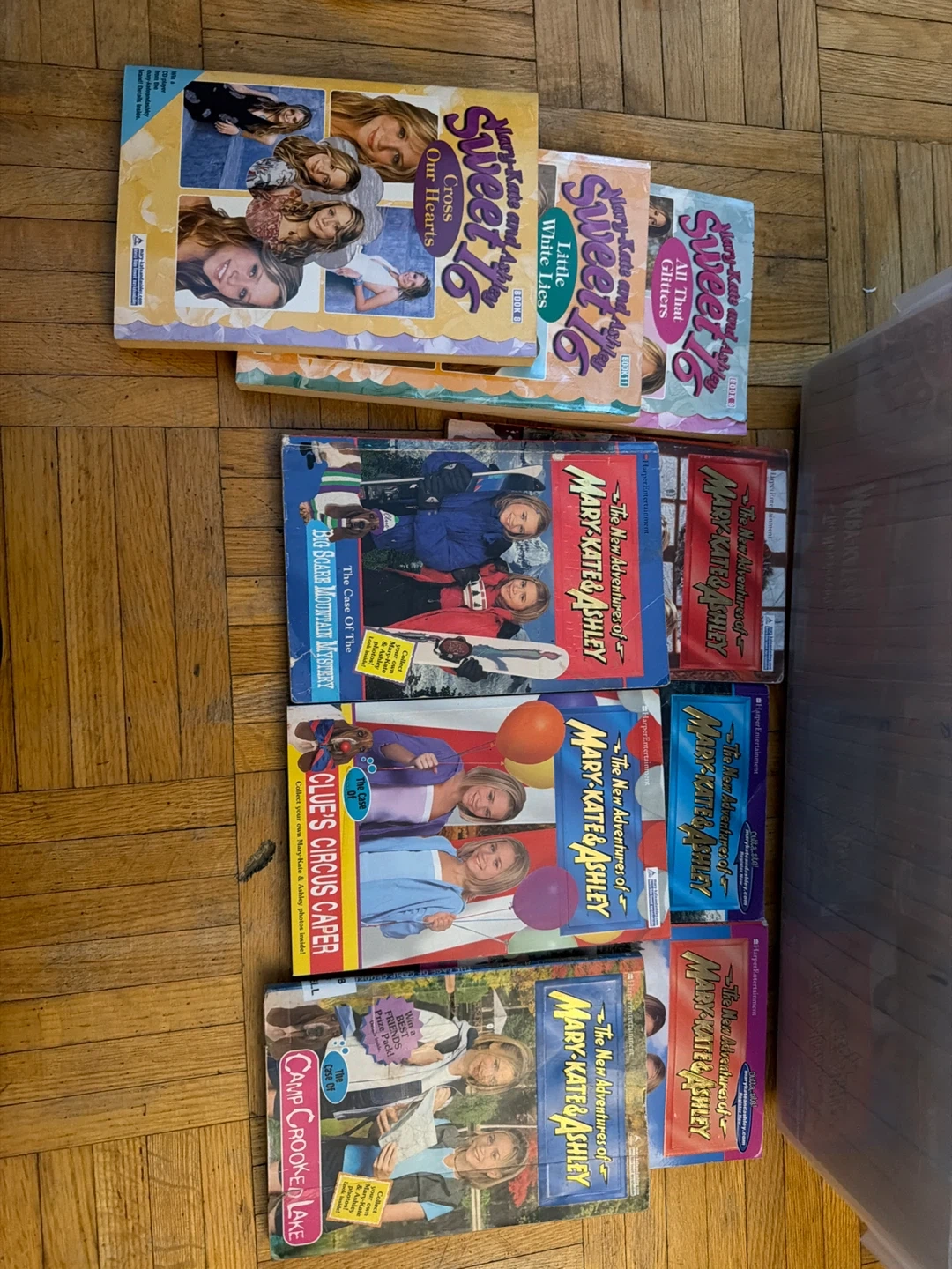 Selling a collection of Mary-Kate & Ashley books! Perfect for young readers who enjoy mystery and adventure. This lot includes titles from "The New Adventures of Mary-Kate & Ashley," "Two of a Kind," and "Sweet Sixteen" series. Great for building a personal library or gifting to a fan also 1 full house book. Take the entire bin.