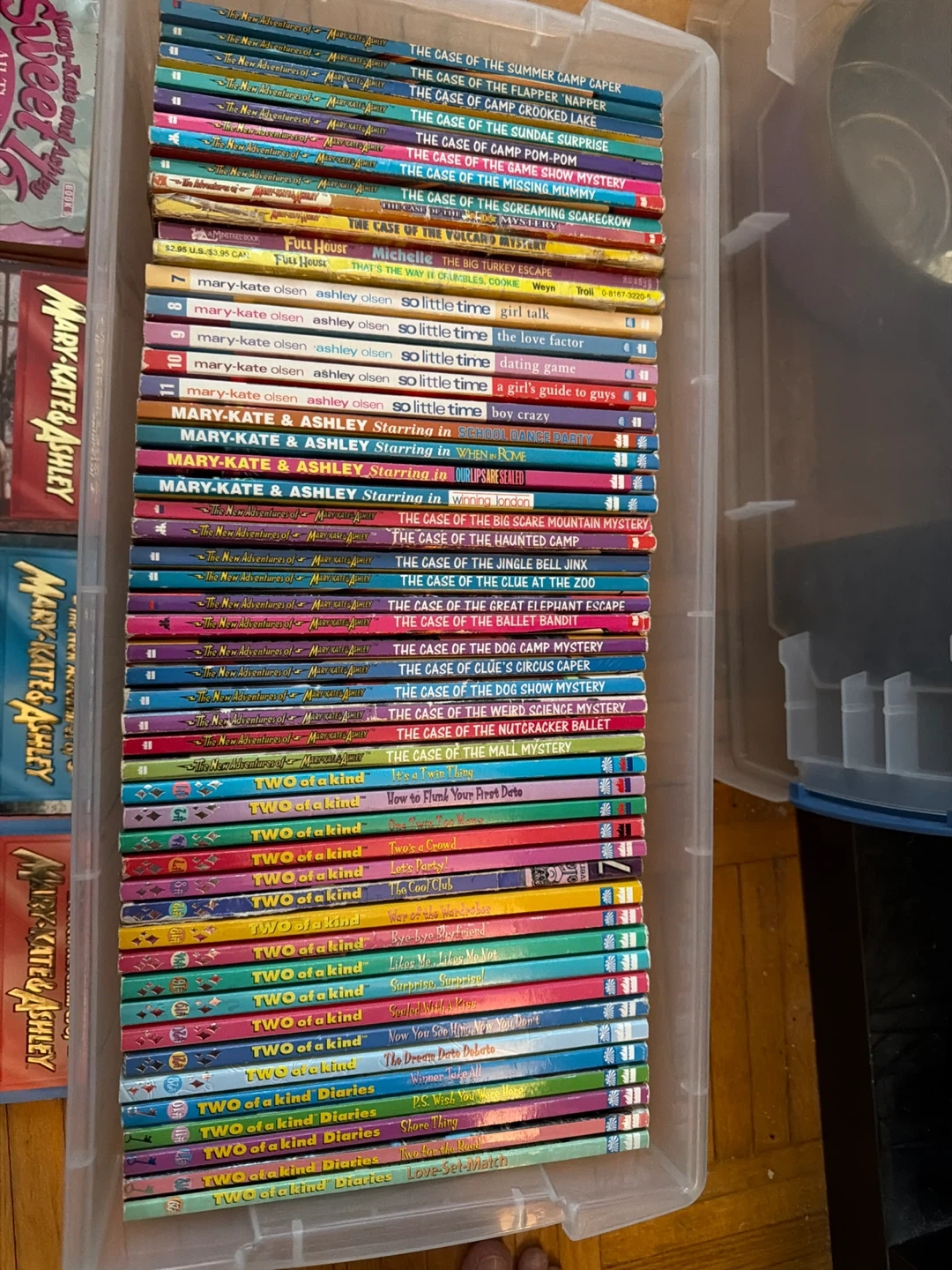 Selling a collection of Mary-Kate & Ashley books! Perfect for young readers who enjoy mystery and adventure. This lot includes titles from "The New Adventures of Mary-Kate & Ashley," "Two of a Kind," and "Sweet Sixteen" series. Great for building a personal library or gifting to a fan also 1 full house book. Take the entire bin.