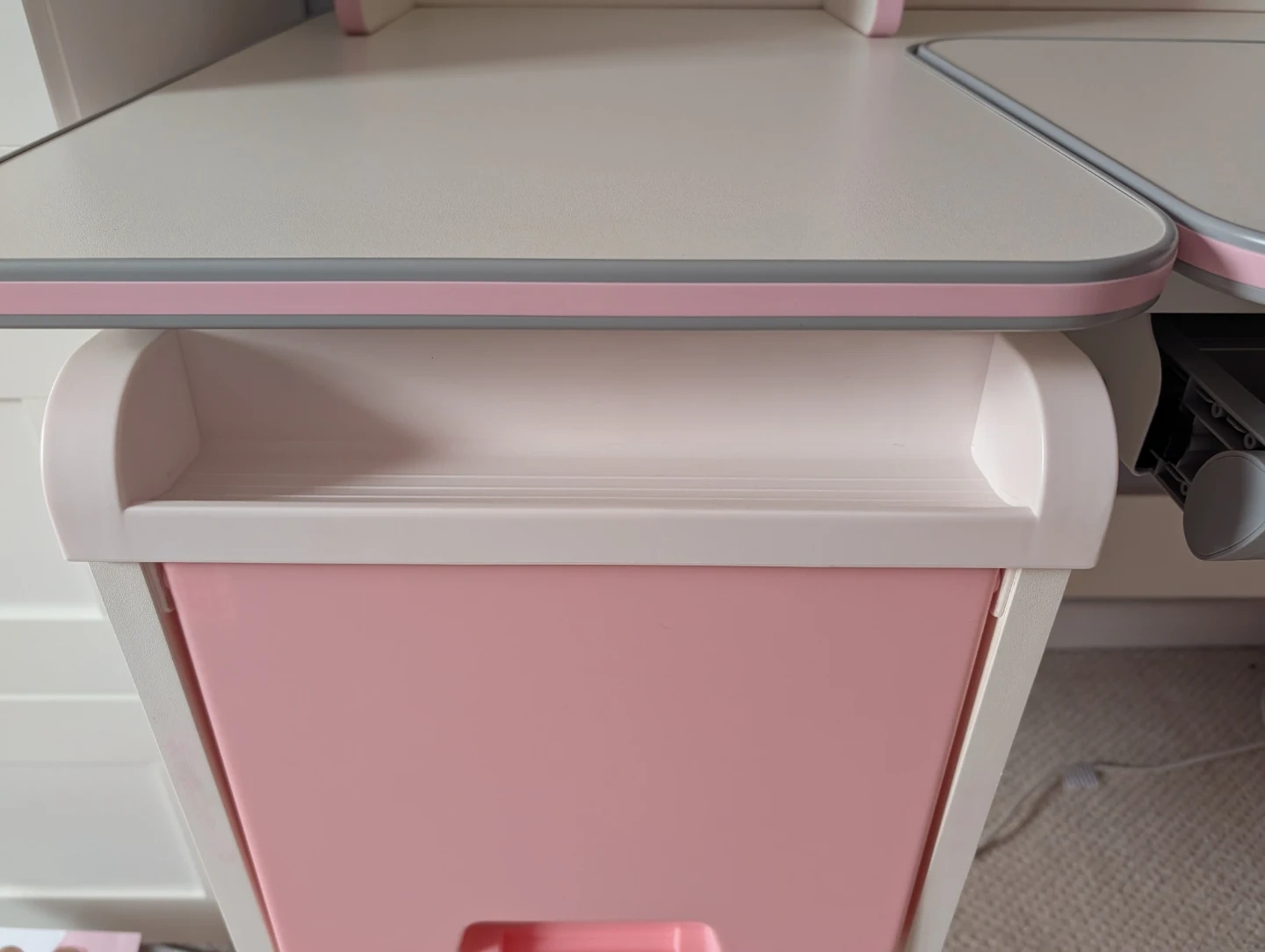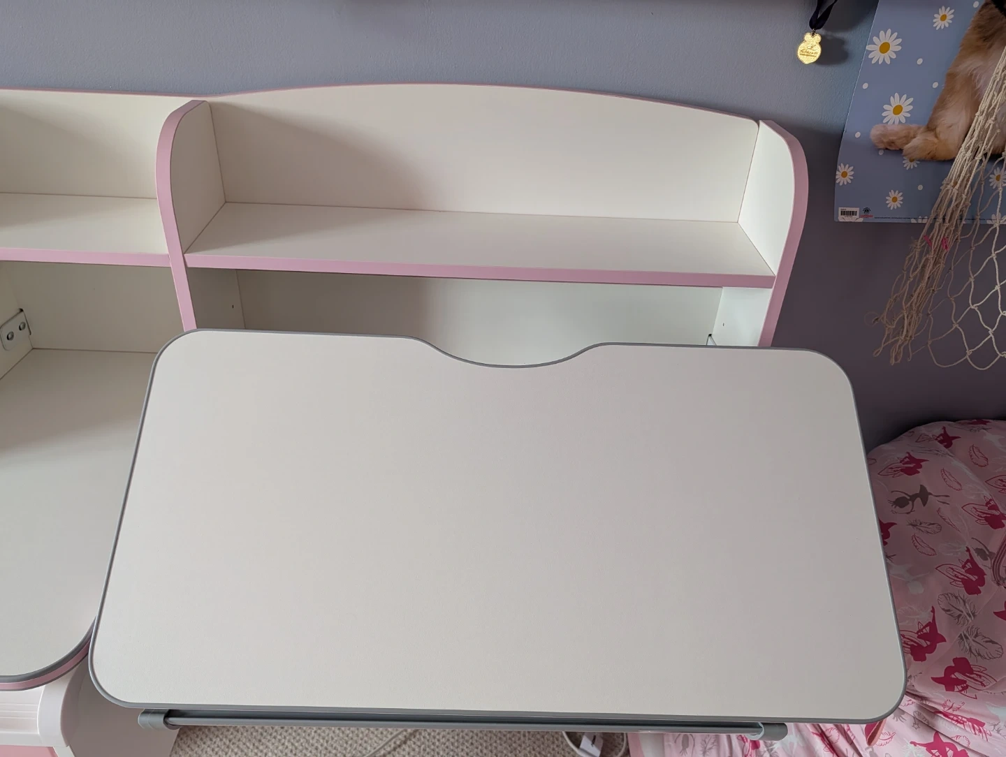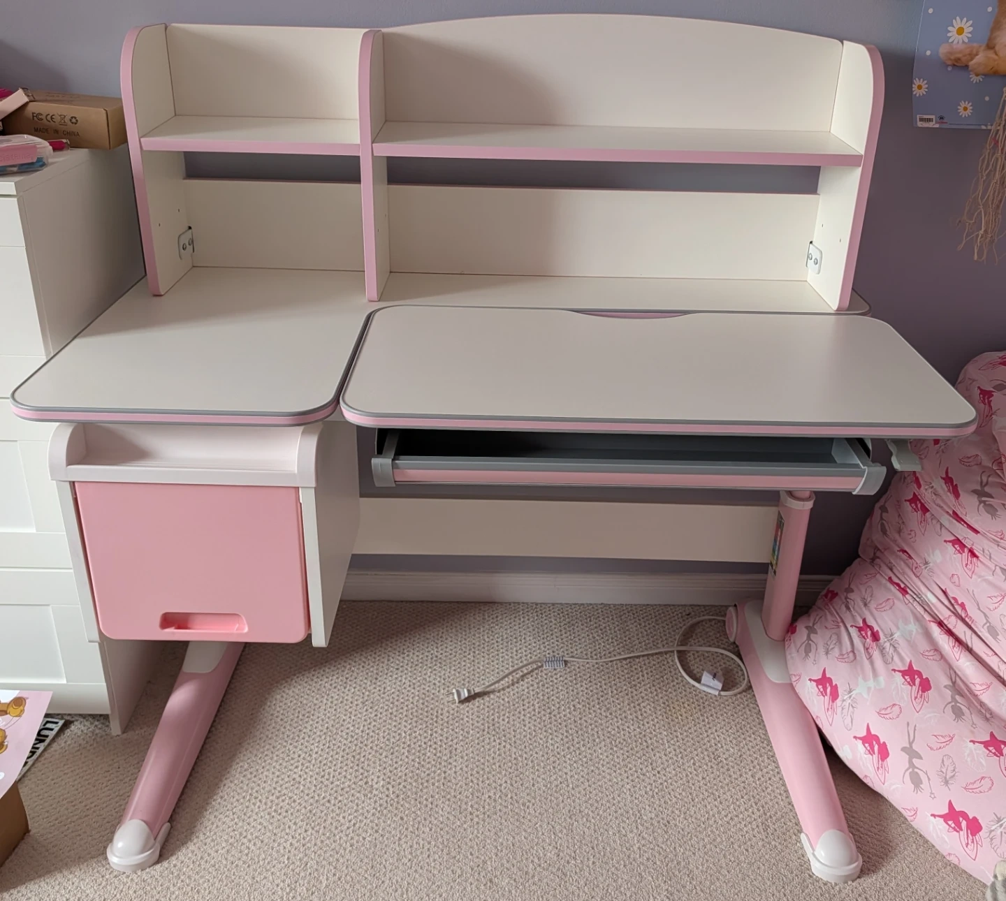 Selling a cute kids desk with adjustable height! It's in great shape and perfect for growing children. The desk features a pink and white colour scheme, adding a touch of fun to any study space.