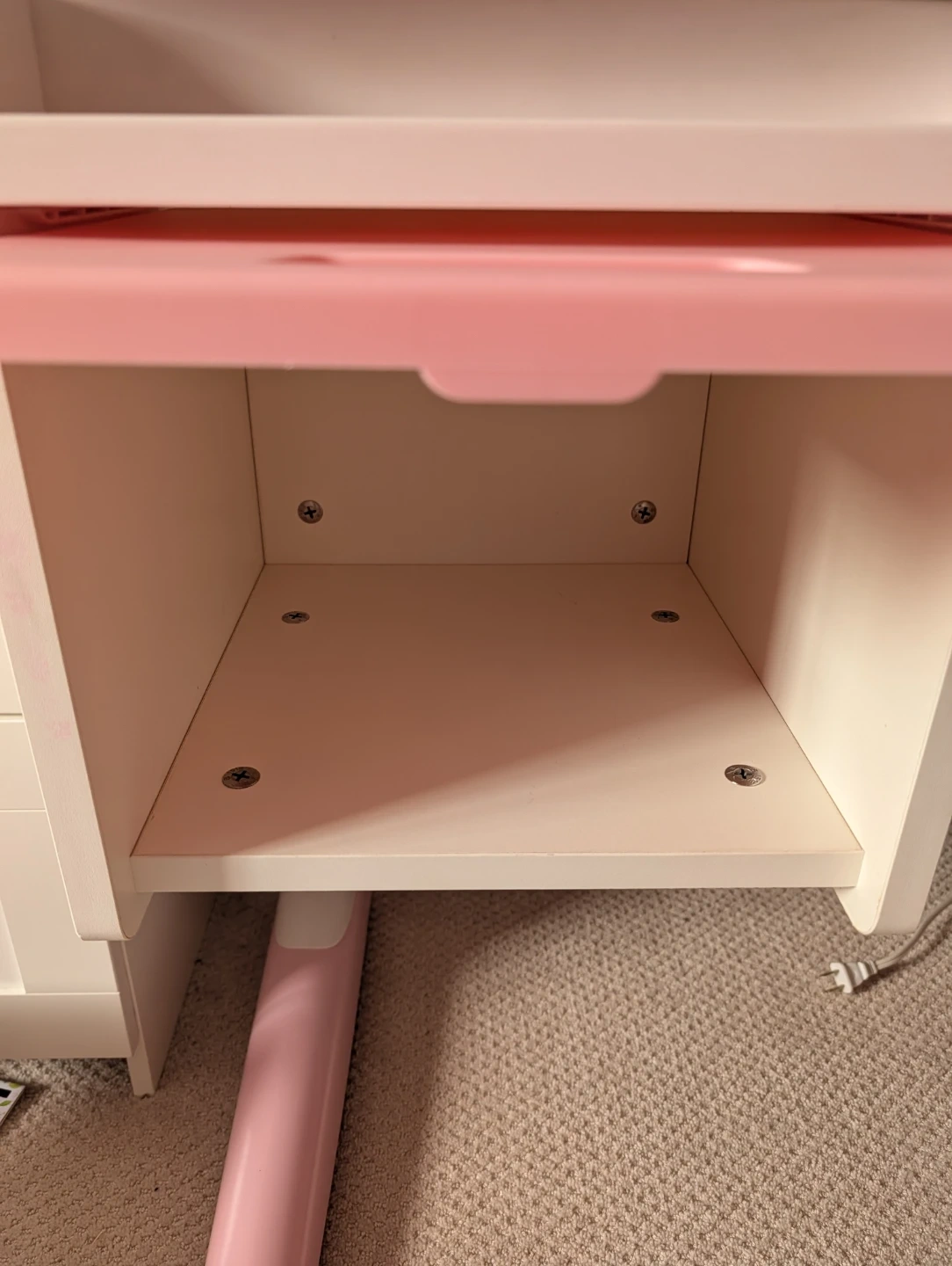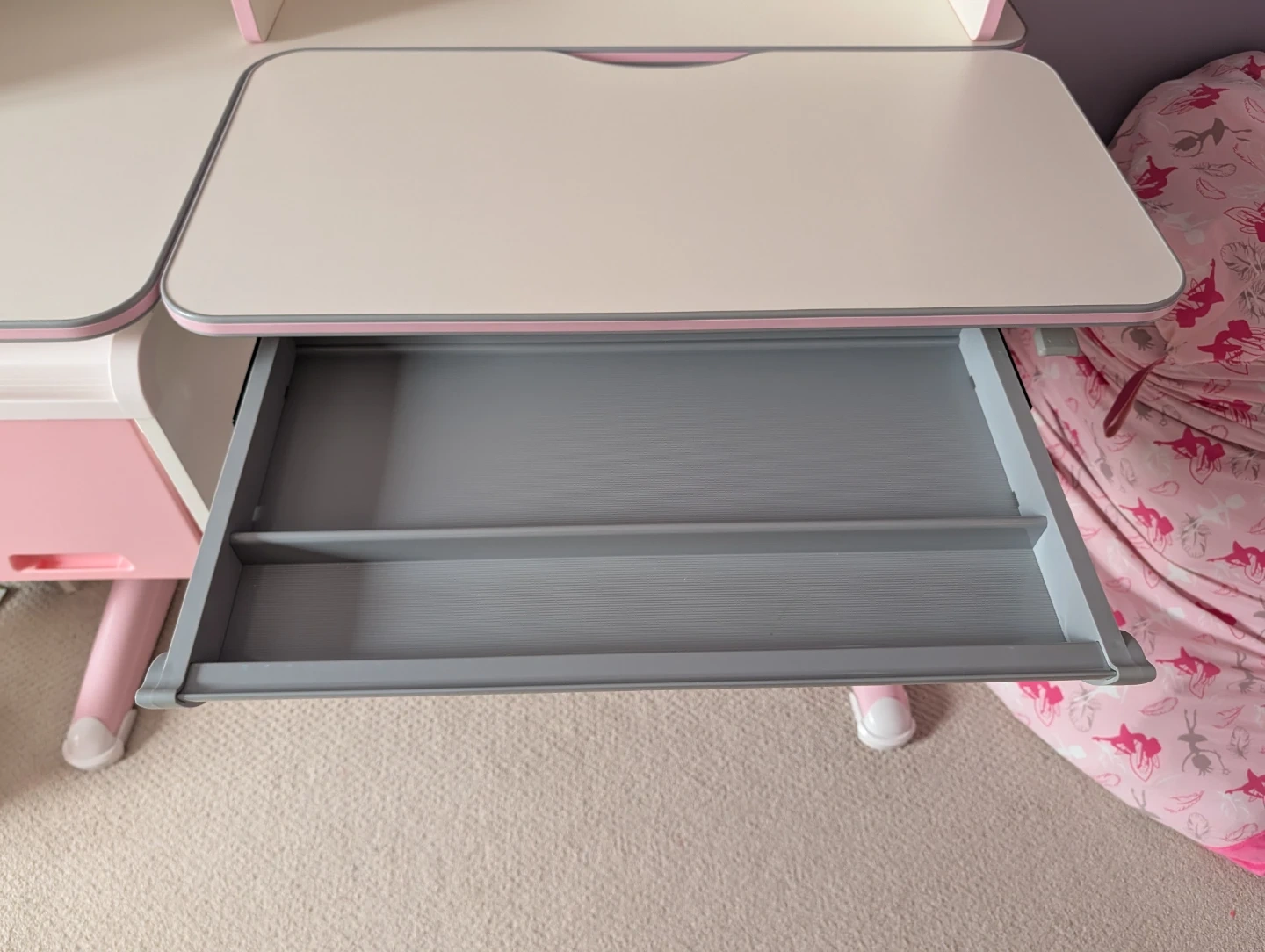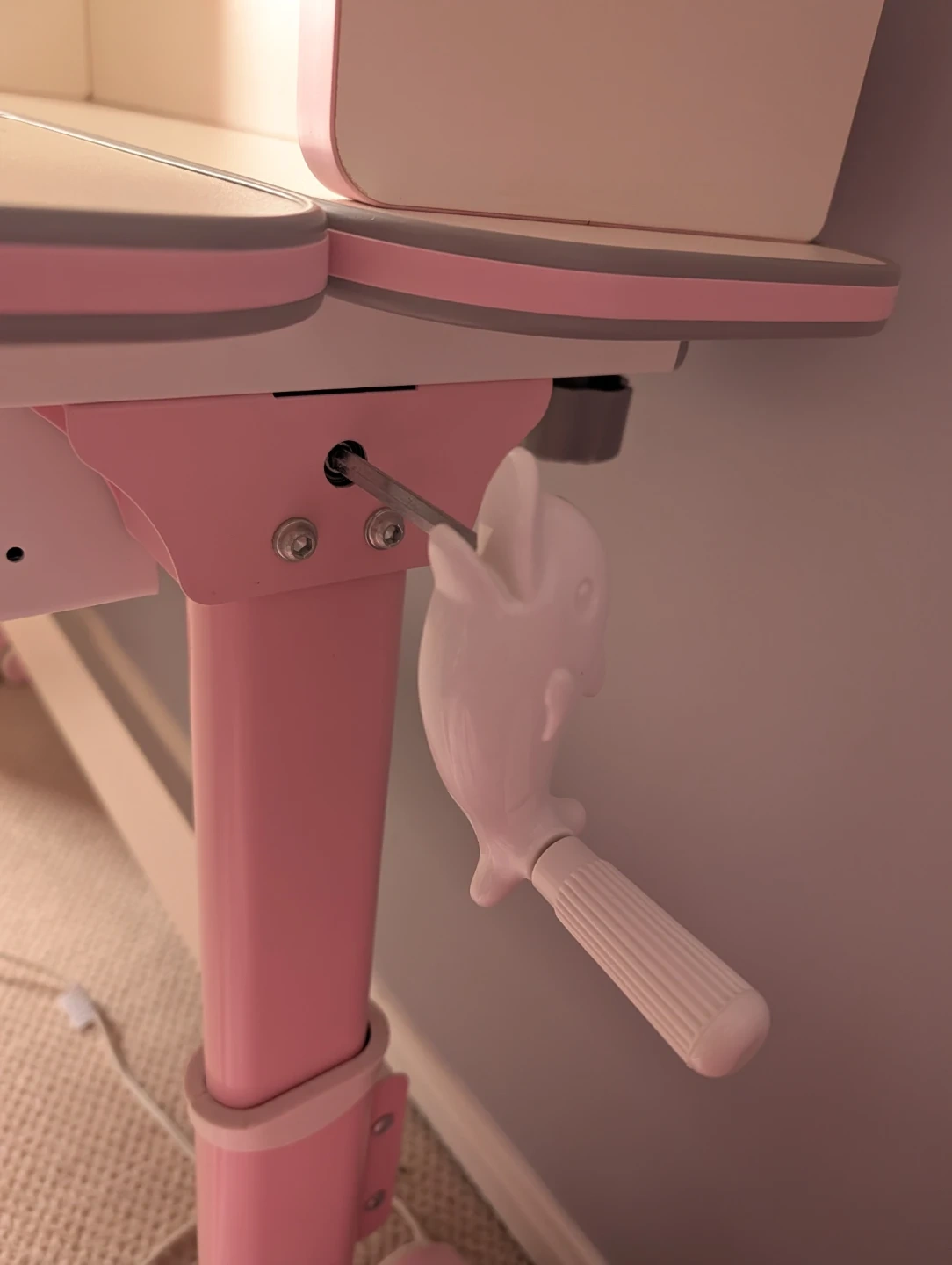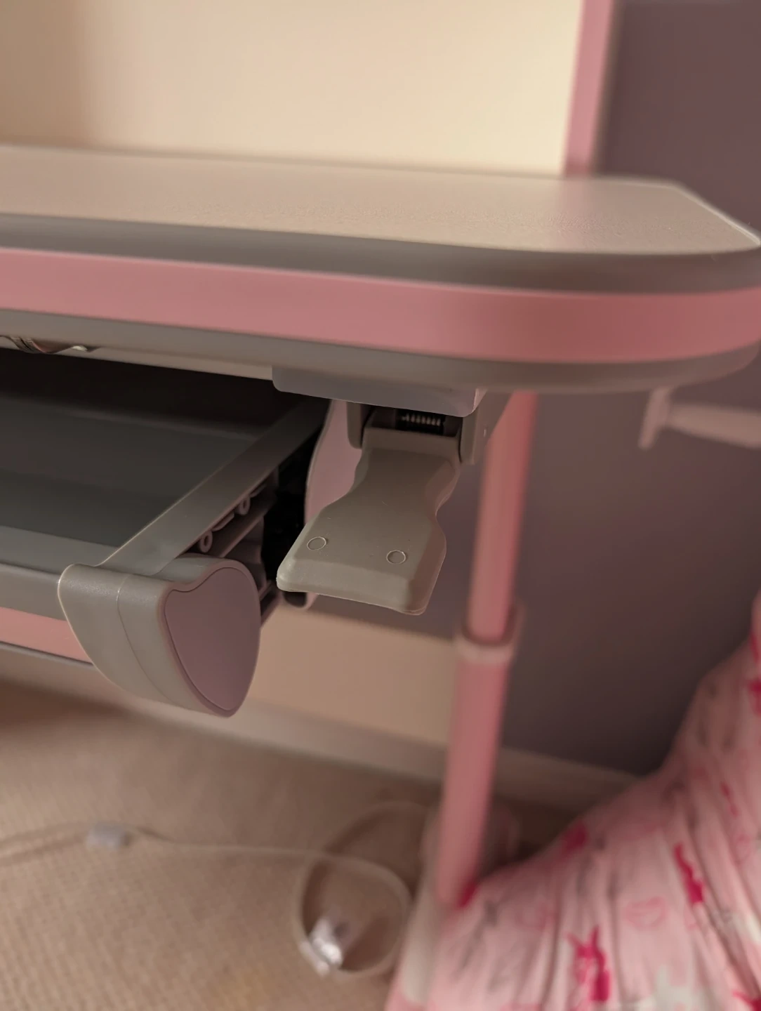 Selling a cute kids desk with adjustable height! It's in great shape and perfect for growing children. The desk features a pink and white colour scheme, adding a touch of fun to any study space.