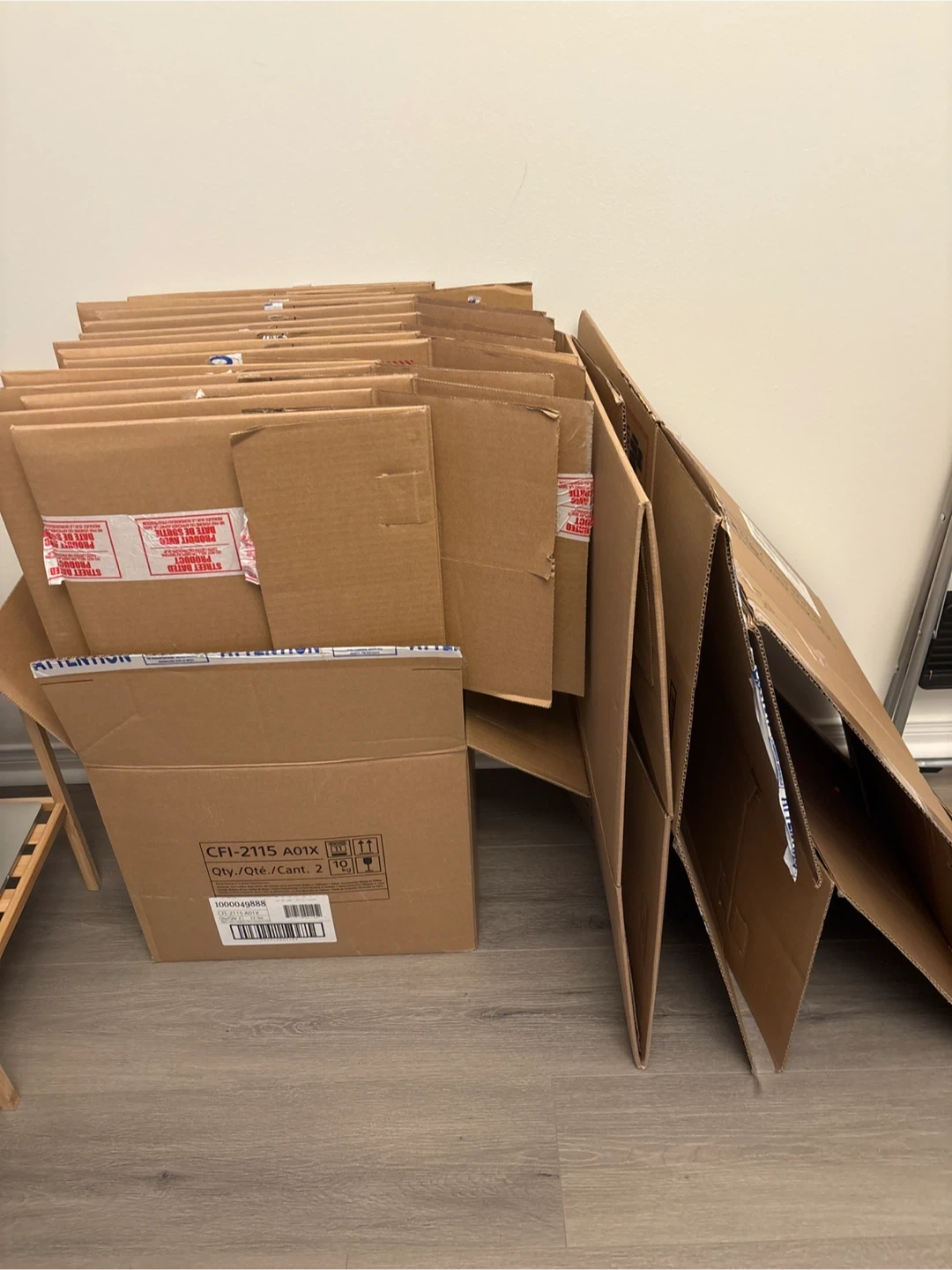 Closed bottom "No need to tape bottom for fast packing. Pick up at Steels and Bathurst.