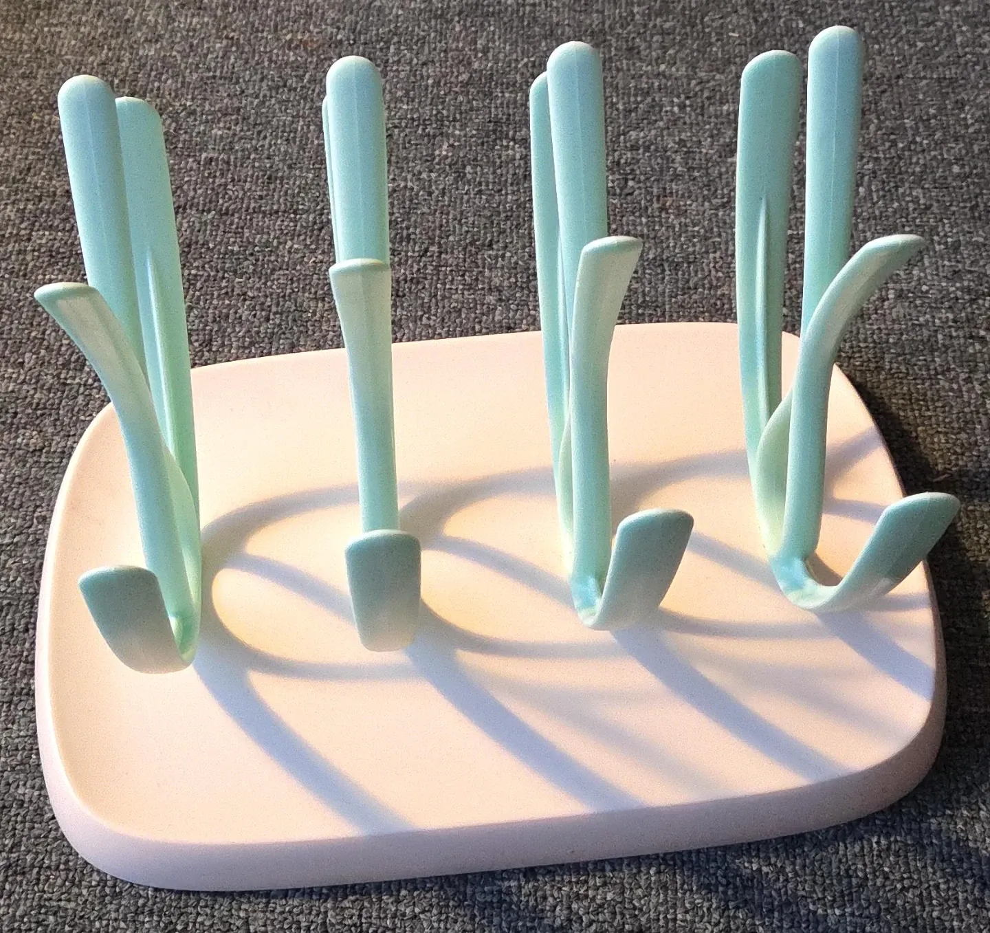 This baby bottle drying rack is in great condition and ready for a new home! It's perfect for keeping your baby's bottles clean and organized. The rack is a light blue/green colour with a white base.