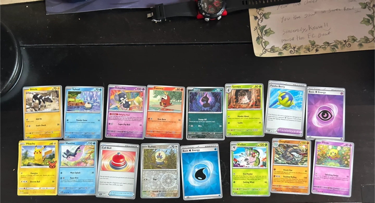 Selling a mixed lot of Pokemon trading cards! This collection includes various Pokemon, trainers, and energy cards. Great for collectors or players looking to expand their deck. Take a look at the photos for the exact cards included