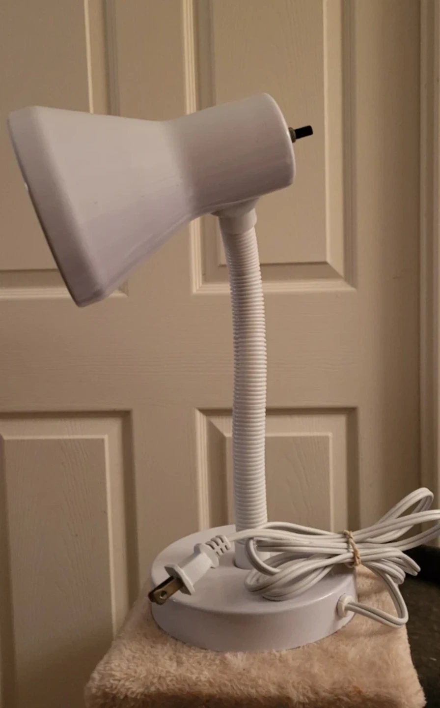 Selling a simple white desk lamp. It has a flexible gooseneck so you can adjust the light to where you need it. It's in great condition and ready to brighten up your workspace or bedside table