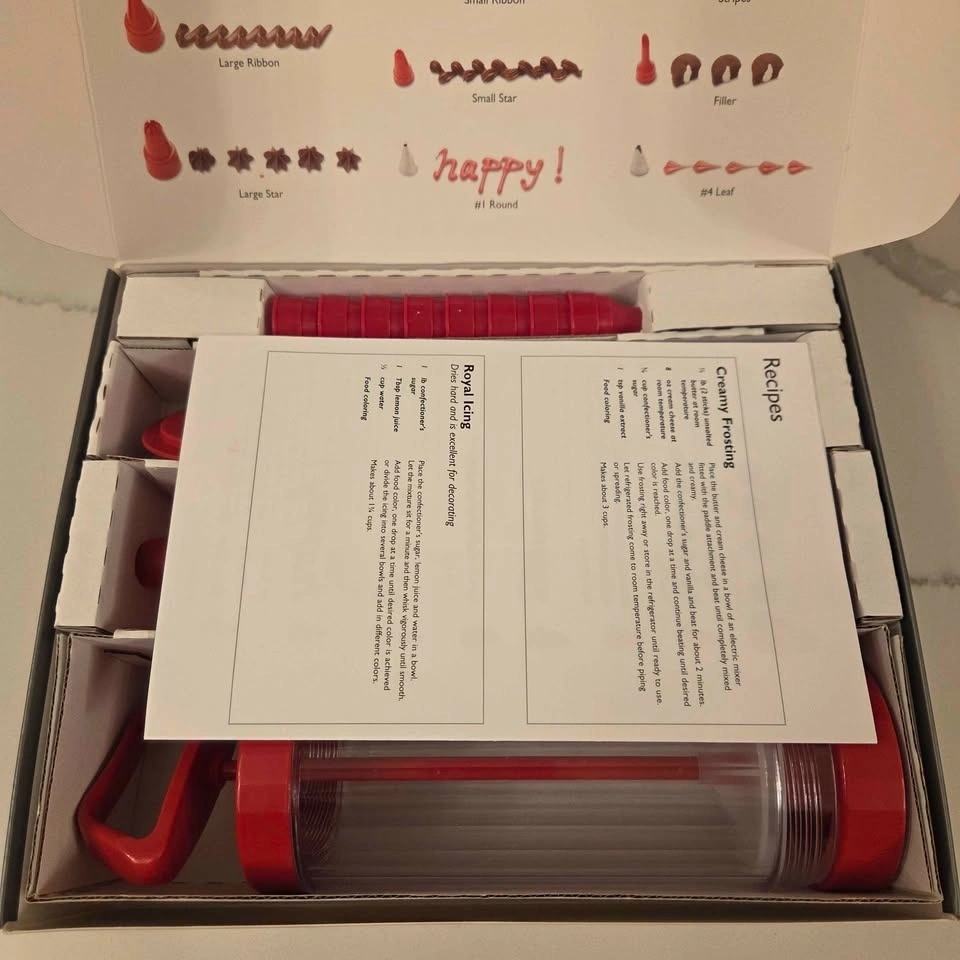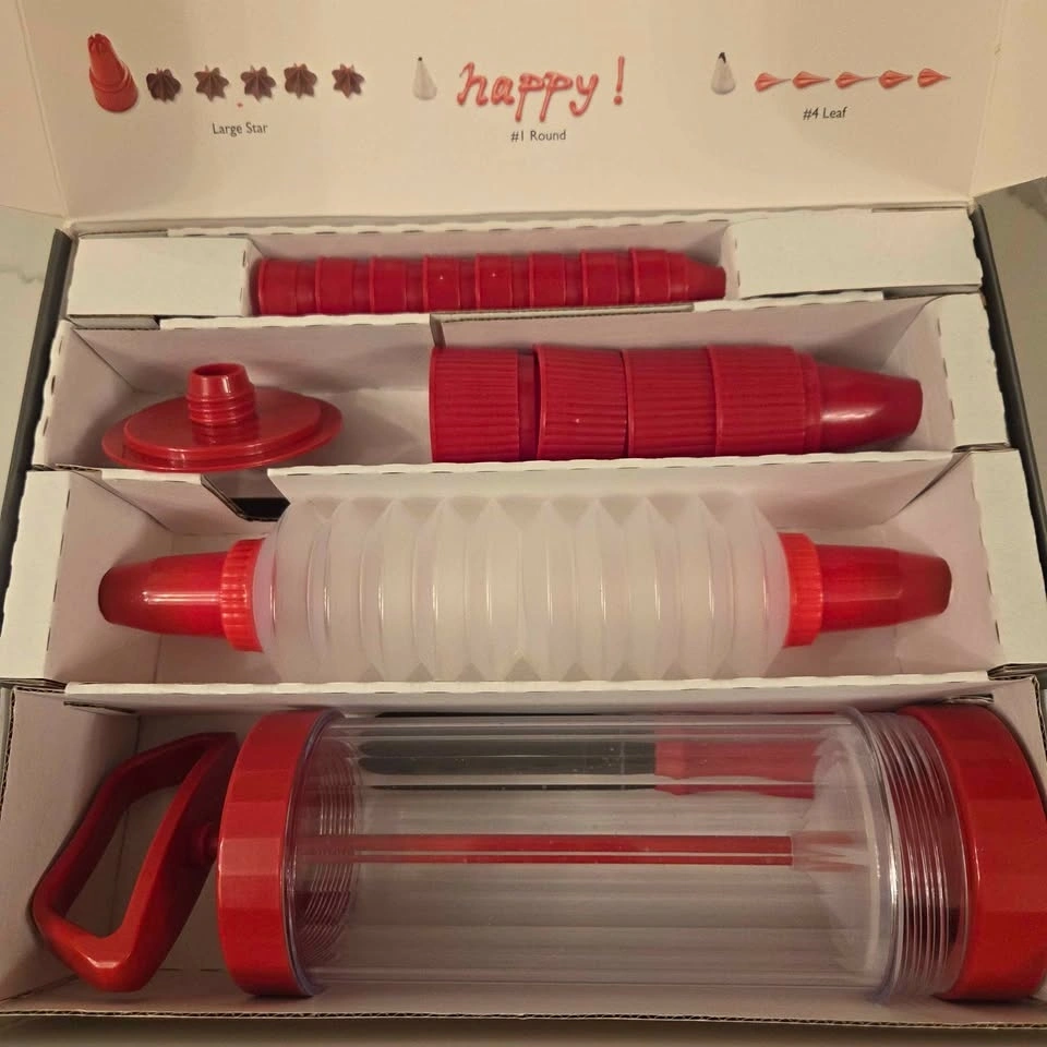 Only used once, most pieces were not used that one time. In great condition. This set contains all the pieces and is perfect for icing cookies, cakes, and other baked goods.