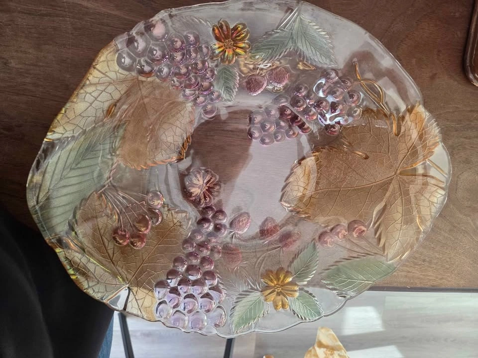 Vintage Multi-Color Glass Bowl with Fruit Motif