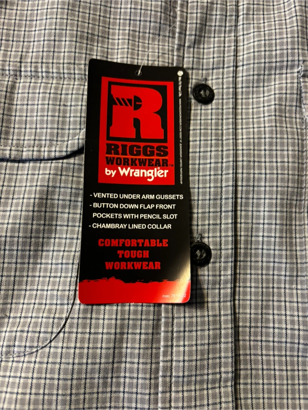 brand new RIGGS Workwear shirt by Wrangler. It's an XL size and features: