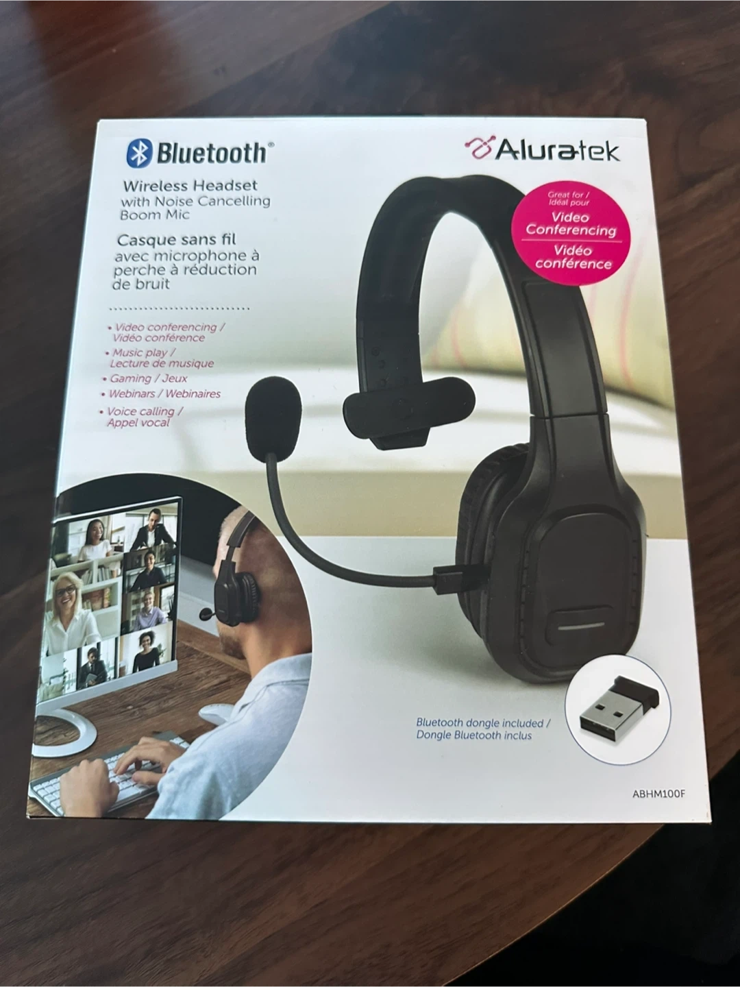I'm selling a brand new Aluratek Bluetooth Wireless Headset with Noise Cancelling Boom Mic, model ABHM100F!