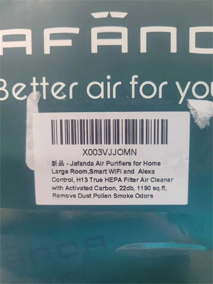 Jafända Air Purifiers for Home Large Room, Smart WiFi and Alexa Control, H13 True HEPA Filter Air Cleaner with Activated Carbon, 22db, 1190 sq.ft, Remove Dust Pollen Smoke Odors MSRP: $189.99 Item Condition: LIKE NEW/SLIGHT SIGN OF USED