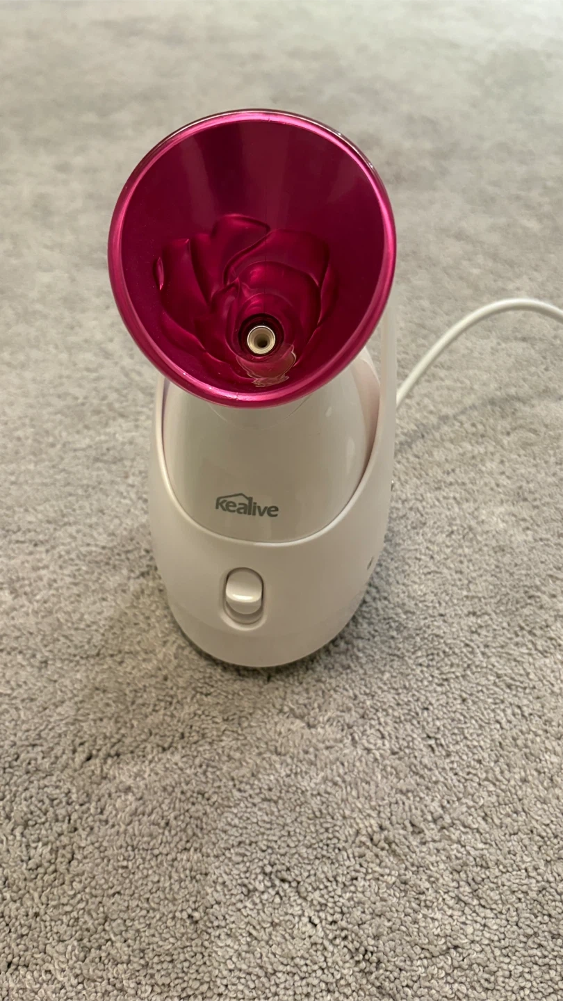 I'm selling a Realive facial steamer in great condition. It's perfect for a relaxing spa day at home! It's white with a pink top, and it's easy to use. Feel free to message me if you're interested